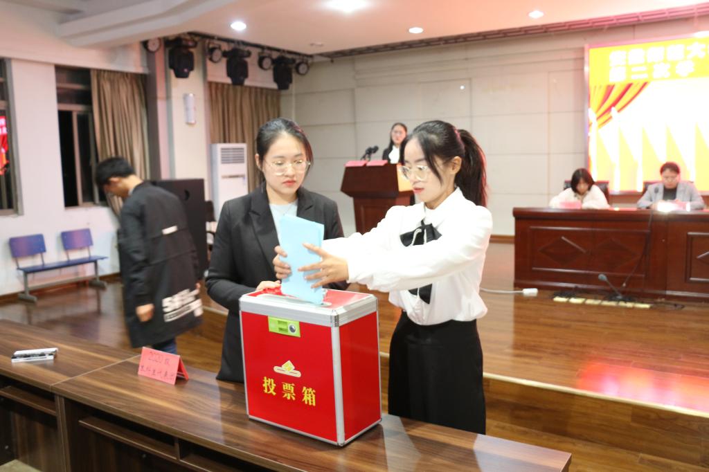 与会代表听审议并通过了校学(研)代会代表选举办法、学院学(研究)生会主席团选举办法、学(研究)生委员会选举办法及学(研)代会总监票人、监票人、总计票人、计票人名单。与会代表通过无记名投票方式选举了色情视频