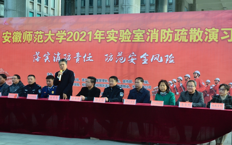 接着陆林副校长指出,实验室安全是学校安全的重中之重,全体师生员工要不断提高实验室安全意识,充分认识到实验室安全的重要性。并对现场师生提出几点要求:一是各学院师生要高度重视消防安全在日常学习中的重要性,充分了解和熟悉灭火器械的使用方法,提高应变处事能力,达到遇事不慌、沉着应对、自我保护的效果;二是近期高校实验室事故频发,要求实验室负责老师要切实履行实验室安全管理主体责任,严格过程安全管理,严防各类事故发生。三是要以本次消防安全疏散演练为契机,进一步把安全工作做实、做细、做好,把各种安全隐患消除在萌芽状态,真正做到“防患于未然”。同时要求学校相关部门建立良好的协同联动机制,确保学校各项工作安全平稳有序运行。