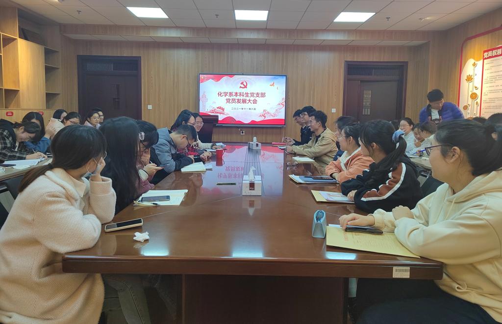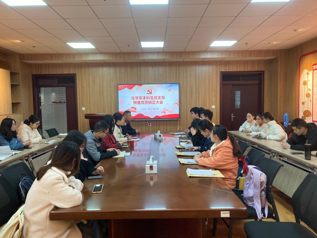 本网讯(化学系本科生党支部 张思雨)11月8日下午,化学系本科生党支部在礼勤楼707室召开了2021年下半年发展党员及党员转正大会。本次大会由化学系本科生党支部书记陈静主持,辅导员程紫丹、王霞及全体党员参加此次会议,色情视频