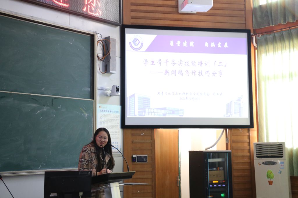 为提升实践工作能力,发挥学团组织自我管理、自我服务、自我管理、自我监督职能,高年级学生骨干结合亲身体会开展了四场次实务技能专题培训。院学生会主席团成员沙凝进行了办公技能专题培训,包括常用办公软件的基本操作、文本格式的设置调整、材料撰写的规范等。院团委学生副书记吴泓婧从新闻稿的类型、基本内容、图片拍摄等方面进行了新闻稿和活动总结撰写专题培训。在培训课程间隙,全体学员通过观看新闻联播的相关片段,学习了党的十九届六中全会精神。随后学生会主席团成员汝晓玉开展了学生工作人员心理调适的培训,她从“为什么要当学生工作人员”、“学生工作人员应有的心理素质”、“学生工作人员工作时遇到的心理问题”等方面进行展开,提醒各位学生工作人员要擅于自我调整,以积极的心态面对学生工作。培训会议的最后,章志诚首先结合自身学生工作经验,与大家交流如何坚守工作人员初心,接着简要介绍并分享了ps,excel等软件常用操作及应用知识,最后与全体学生工作人员共同学习习近平总书记对青年的寄语,勉励大家不忘初心,砥砺前行。