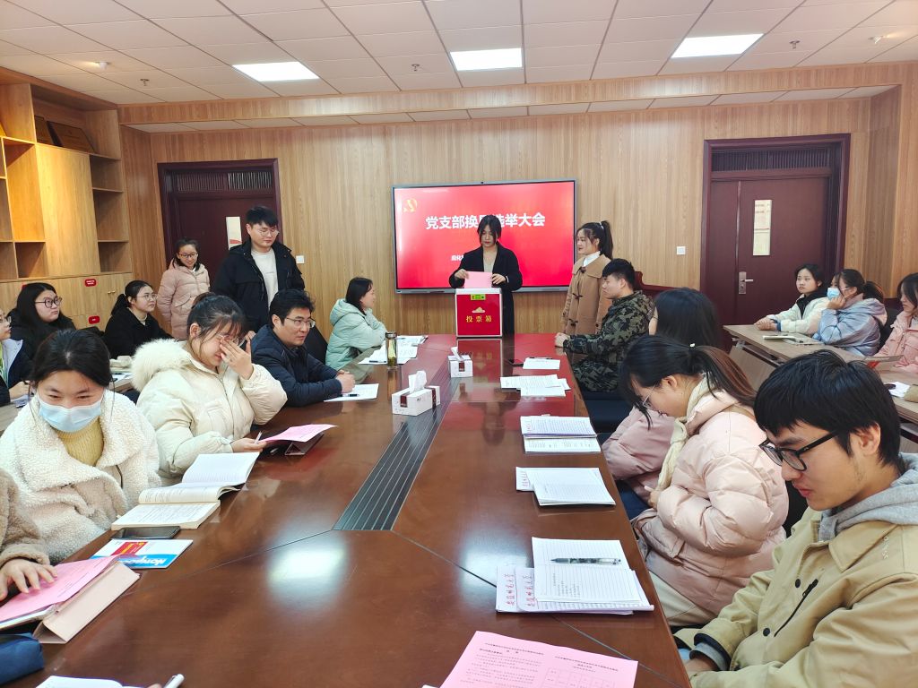 大会提议信雅倩同志为监票人,朱王杰同志为计票人,投票和统计工作随之开始。经上级党组织批准,应化系本科生党支部新一届支部委员4人,候选人5人,大会正式党员投票,根据记票结果,陶勇,曹玉昆,董文秀,詹童凯4位同志得赞成票数超过会议实到有选举权的党员人数半数,当选为应化系本科生党支部新一届支部委员会委员。会后,新一届支委会召开第一次会议,投票选举支部书记,确定支委分工,根据选举结果,确定陶勇担任支部书记,曹玉昆、詹童凯、董文秀三位同志分别担任组织委员、宣传委员和纪检委员。