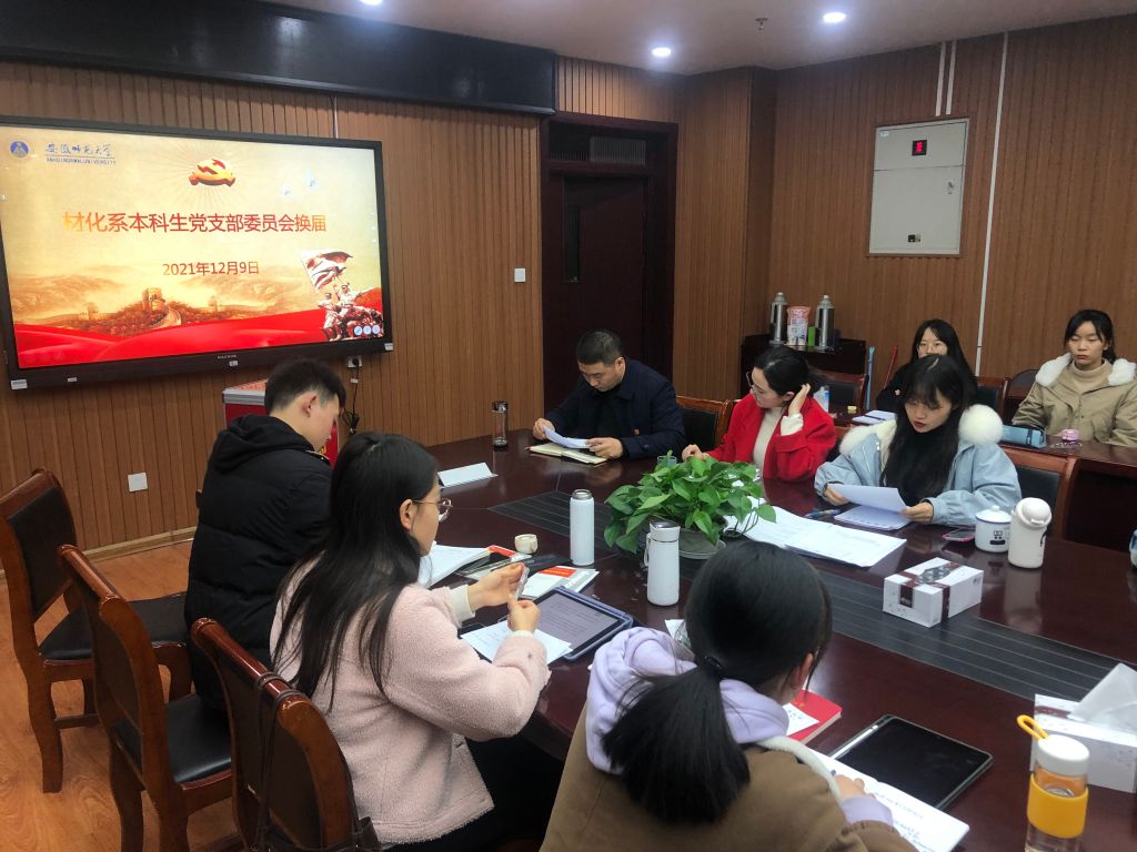 张强)12月9日下午,材化系本科生党支部在礼勤楼702会议室召开了党支部委员会换届选举大会,换届大会由支部书记王芳主持,20级材料化学专业辅导员付娜、材化系本科生党支部42名党员参加会了议,学院党委副书记李古州应邀列席会议指导。