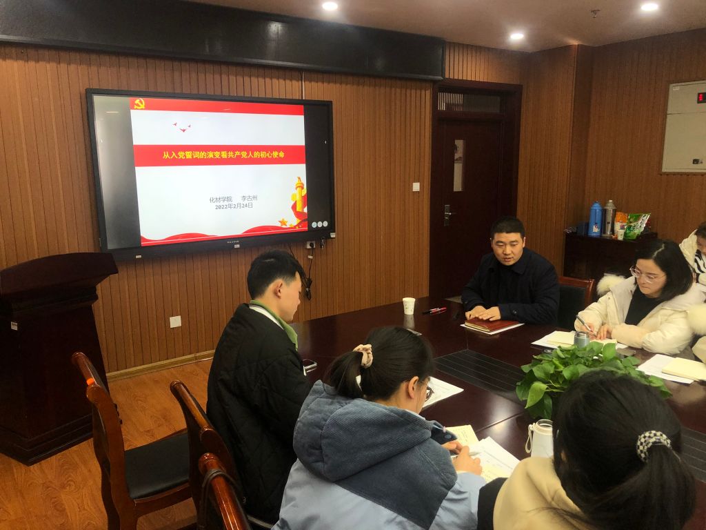 黄宁宁)2月24日下午,材化系本科生党支部在礼勤楼702会议室召开2021年度基层党组织组织生活会暨民主评议党员会,支部全体党员参加会议,学院党委副书记李古州作为普通党员参加会议,会议由支部书记王芳主持。