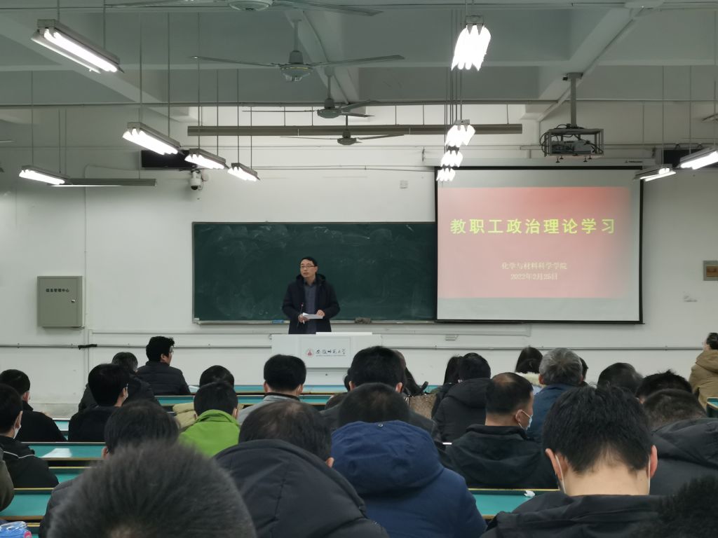 高峰院长传达学习了《安徽省支持高校学科建设若干政策》(皖政【2022】1号),解读了学校十四五规划。
