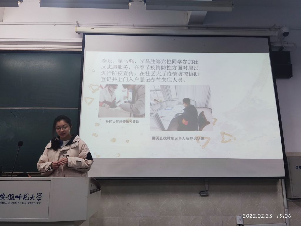 化材学子利用寒假时间,以个体为单位,积极参加当地志愿服务活动。2021级、2020级学生报名参加社区服务工作,帮助当地进行疫情防控监测和返乡人员信息的录入,与此同时,部分学生还利用空闲时间帮助当地居民区清理雪地,用实际行动彰显雷锋精神。各团支部还开展了“暖冬故事分享会”,积极分享寒假社会实践活动心得和感悟,在实践中受教育、长才干、做贡献。