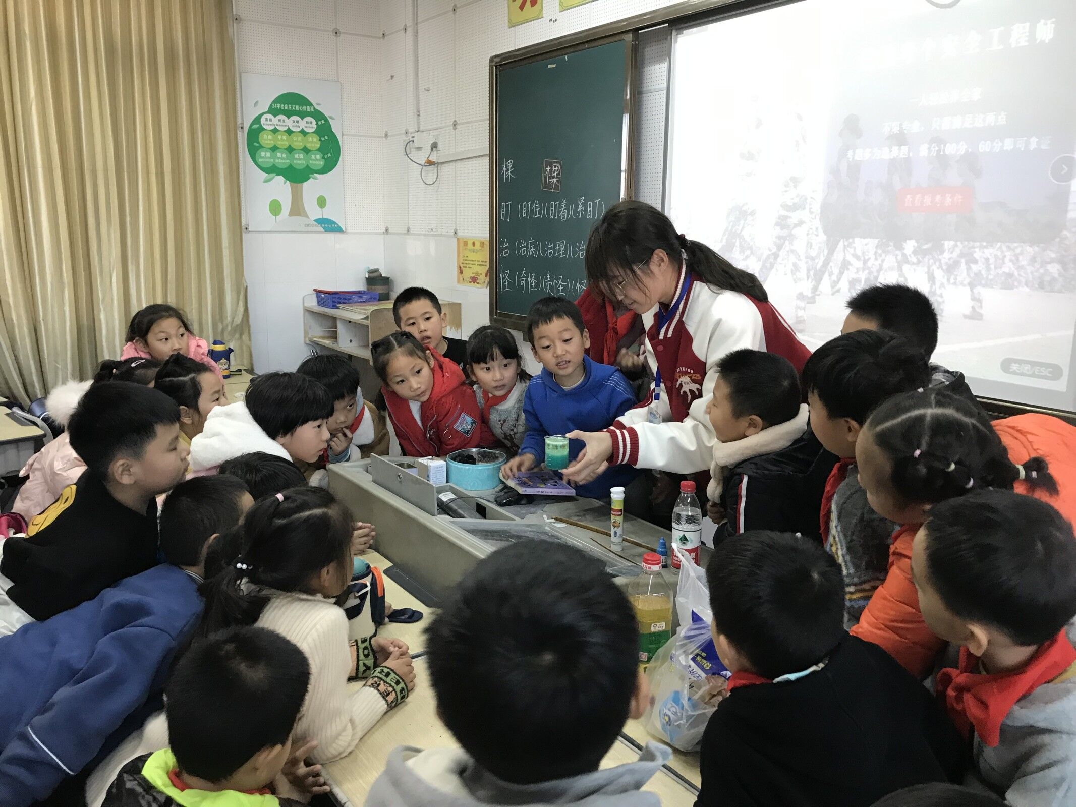 为了将雷锋精神付诸于实践,化材学子结合师范专业特色,前往当地小学开展支教活动。江淮科普学校前往火龙岗中心学校开展支教工作,向小朋友们宣讲有关化学知识,同时还向当地学生展示了一些趣味小实验,寓教于乐;环境保护协会根与芽前往马塘小学给小朋友们带来了环保小知识,为当地学生们树立起环保理念。