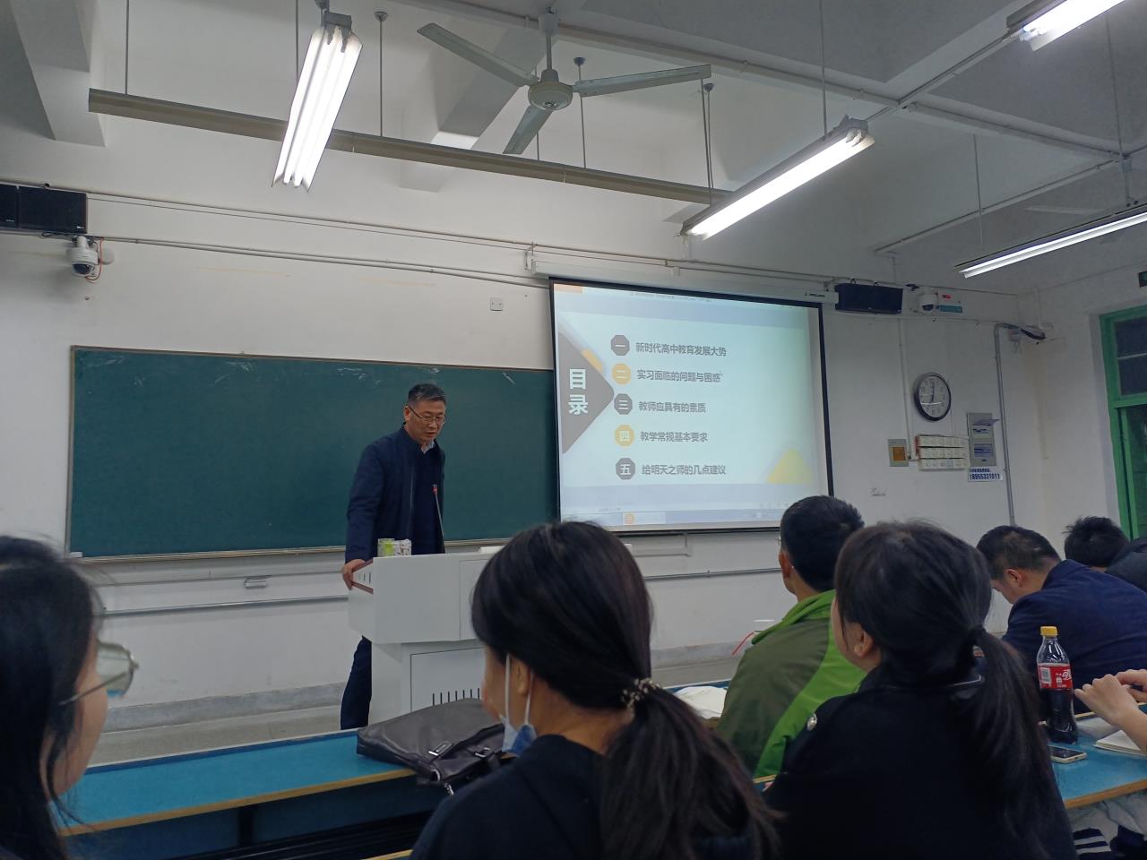 毛宣海老师围绕“做好角色转换 培养教学智慧”对本科师范生提出了关于实习工作的思考和建议。首先,毛老师通过教育部相关文件分析了教育新形式和新高考改革的挑战,针对学生在实习生活和工作中面临的问题提出以下建议,在教学中要做到“心中有标、宽严并济”,做好“备课、教学、作业布置批改、教学研究、分析考试测试质量”五个环节的工作。在生活中要做到“礼貌真诚,虚心求教”,更要具有责任、希望和爱心。 最后,毛老师总结了自己多年的工作经验,认为一个教师的成长路径应该是“成就于写、得益于思、源自于行、筑基于读”。报告结束后,毛老师积极地回答了学生关于实习过程中的其他疑惑。