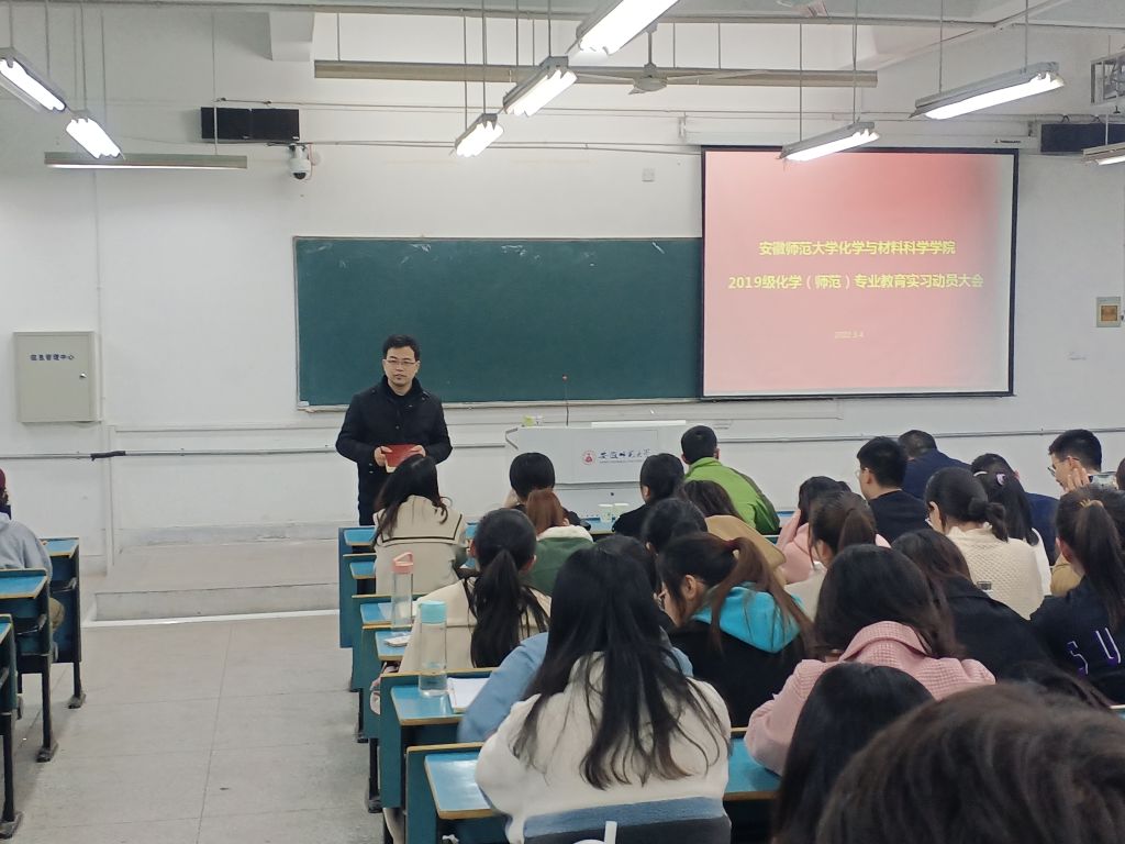 副院长方臻在会议上做了实习动员讲话,同学们要在实习过程中做好“角色转变”,在实习过程中,同学们要时刻注意自己的言行举止,树立良好的师风师德;同学们要尊师爱生,虚心学习,恪尽职守,展现出安徽师大学子的精神风貌。希望同学们珍惜宝贵的实习机会,完成实习任务。