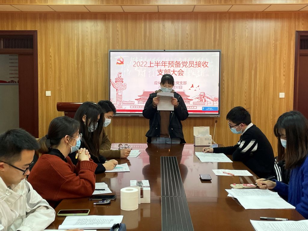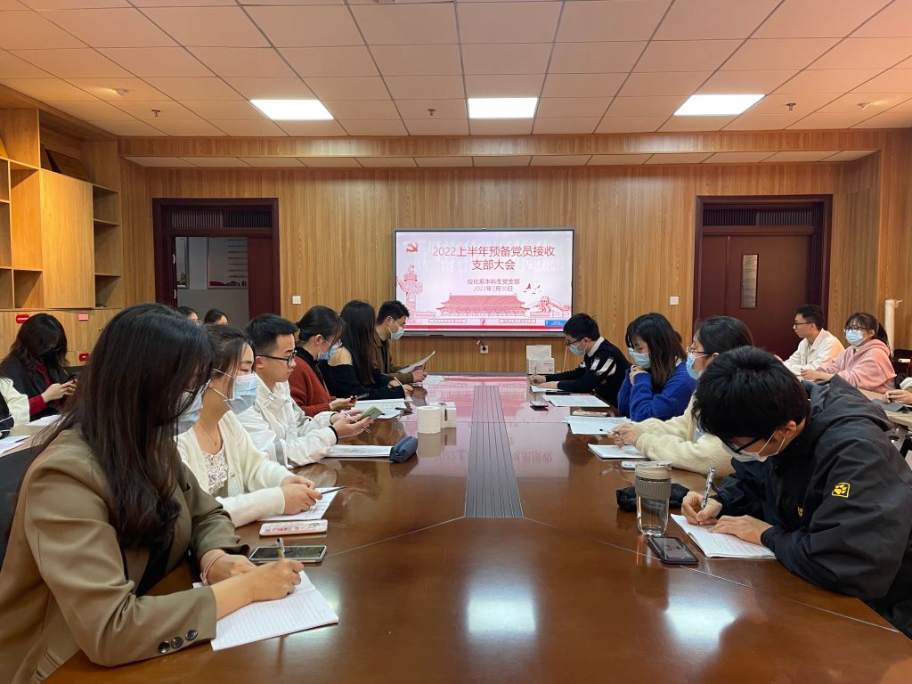 本网讯(应化系本科生党支部 鲁立一)2022年3月30日晚上7点,应化系本科生党支部在礼勤楼707室召开了2022上半年预备党员接收支部大会。应化系本科生党支部全体党员、预备党员、发展对象均按时参会,大会由党支部书记陶勇主持。