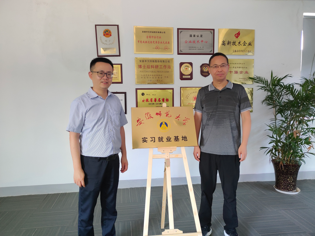 下午,熊宇杰一行来到了安徽中天纺织科技股份有限公司,中天科技总经理、董事长洪五林就公司情况作了简要介绍,熊宇杰介绍了学校情况和毕业生基本情况,汪俊武与中天科技总工吴奇华共同签署实习就业协议,熊宇杰与洪五林共同为实习就业基地揭牌,双方围绕人才培养模式、科技合作意向等方面进行了深入交流。期间,熊宇杰一行共同参观了中天科技研发检测中心。