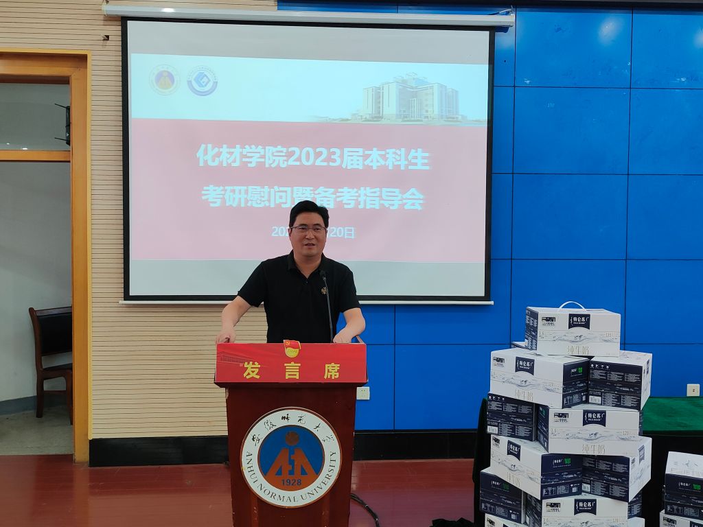 会上,汪俊武首先对同学们坚持留校刻苦学习并保有高昂的精神面貌表示肯定与赞赏,也对同学们提出了建议:一是坚持就是胜利,既然选择了考研就要坚持下去,成功走向考场;二是有信心,才有力量,要学会给自己加油鼓劲;三是勤奋高效,是走向成功的保证,除了学业上的明确规划和努力,还要加强运动,拥有好身体才有清醒的头脑。高峰叮嘱同学们当下一定要有明确的目标,不能继续徘徊,要有规划,持之以恒的复习备考,同时还要有信心,相信自己努力一定会有收获!方臻就专业课复习讲解了暑期备考策略、复习方法和相关注意事项。李古州围绕暑期留校学生常态化疫情防控、核酸检测、在校安全等方面作了重点提醒。会后,学院领导老师为留校考研集训学生分发了慰问品。