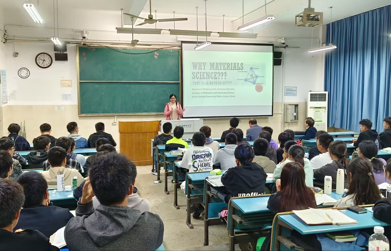 Jawayria Mujtaba老师作了“WHY MATERIALS SCIENCE”的专业推介报告,围绕她在材料科学道路上的经验进行了幽默且富有深度的分享,鼓励同学们对材料化学保持兴趣并砥砺前行。她指出,目前中国正在成为世界绿色典范,新能源材料作为最有前途的新兴领域,等待着我们探索,拥有美好的工作前景。Mujtaba老师以丰富的图片展示了她的研究员生活,坚定了同学们学习材料化学的信心!