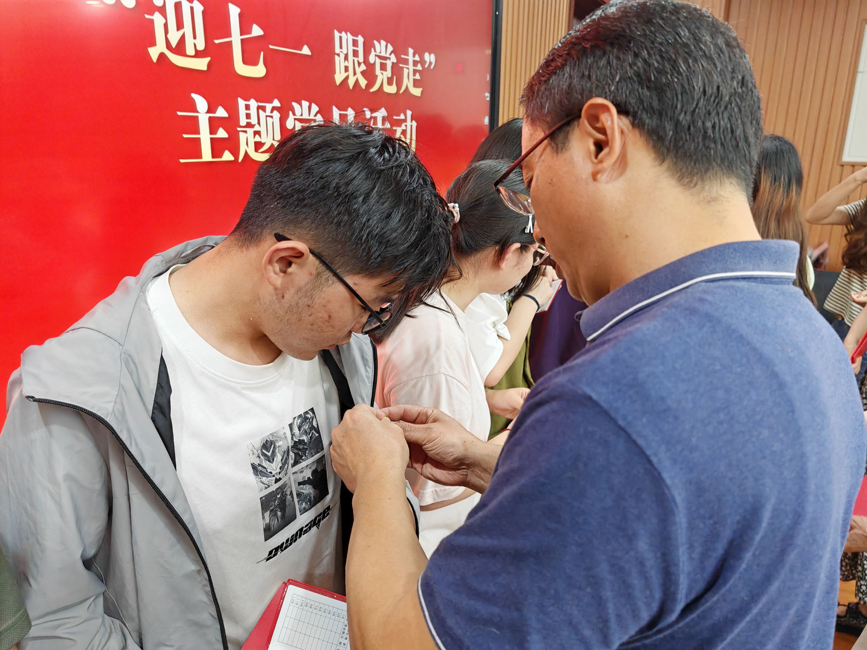重温入党誓词,不忘初心践使命。学院党委委员、纪委委员、光荣在党五十年党员、支部书记为新发展的党员发放党费证、《中国共产党章程》和佩戴党员徽章,与会党员共同进行入党宣誓。全体党员握拳过肩,面向鲜红的党旗,在领誓人的带领下,庄严宣誓。党员们情绪饱满,字字铿锵,在激昂的宣誓声中,每位党员都接受了一次深刻的思想洗礼,进一步强化了对党忠诚、全心全意为人民服务的使命意识。