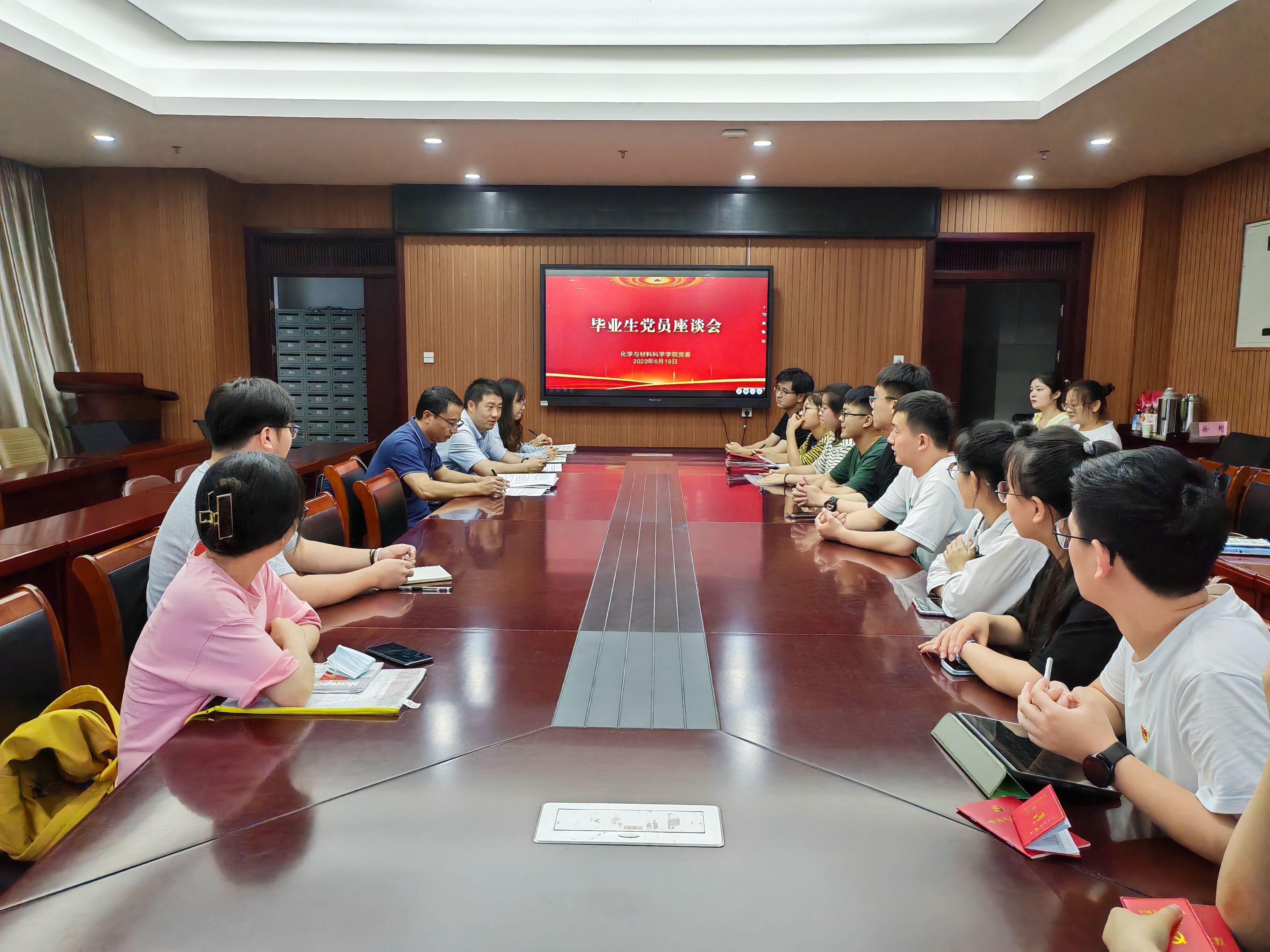 严谨的教风,未来会不懈努力,勇担使命展现师大人的样子。学院党委书记汪俊武、党委副书记李古州在与毕业生的座谈会中指出毕业生党员要坚定信念,懂得感恩,强化表率作用,做一个勇于拼搏的新时代新青年。