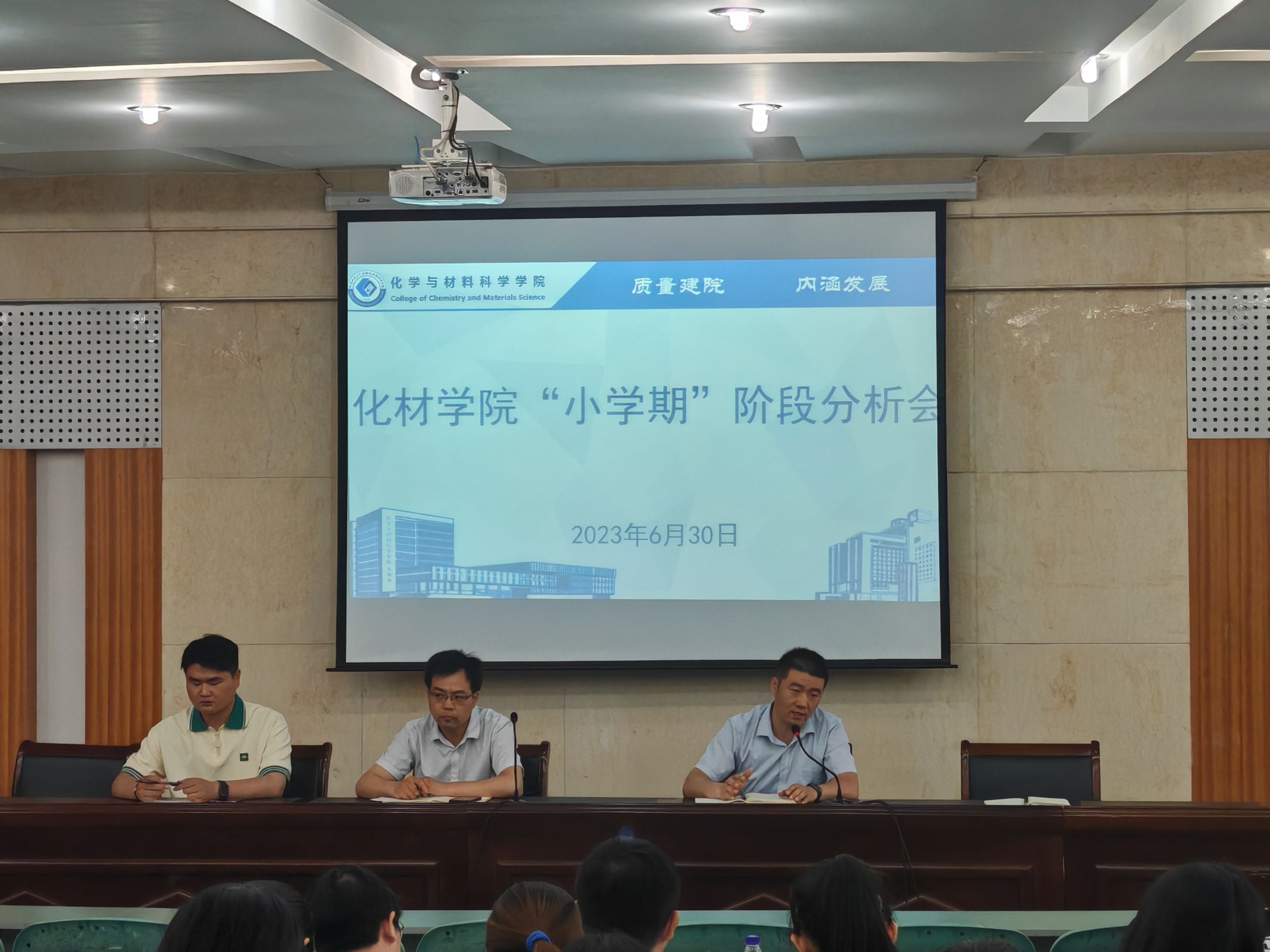 与会领导老师就本周小学期开展的各项情况与参会同学进行了充分交流探讨,聆听了学生代表关于小学期授课的各项建议。此次会议有助于增强同学们的时间观念,清晰考研形势和明确考研途径,提升留校学生的安全意识,敲响安全警钟。同时,学院也将落实好学生留校期间的安全管理工作,筑牢安全防线,切实保障留校学生的人身财产安全,维护校园正常秩序和安全稳定。