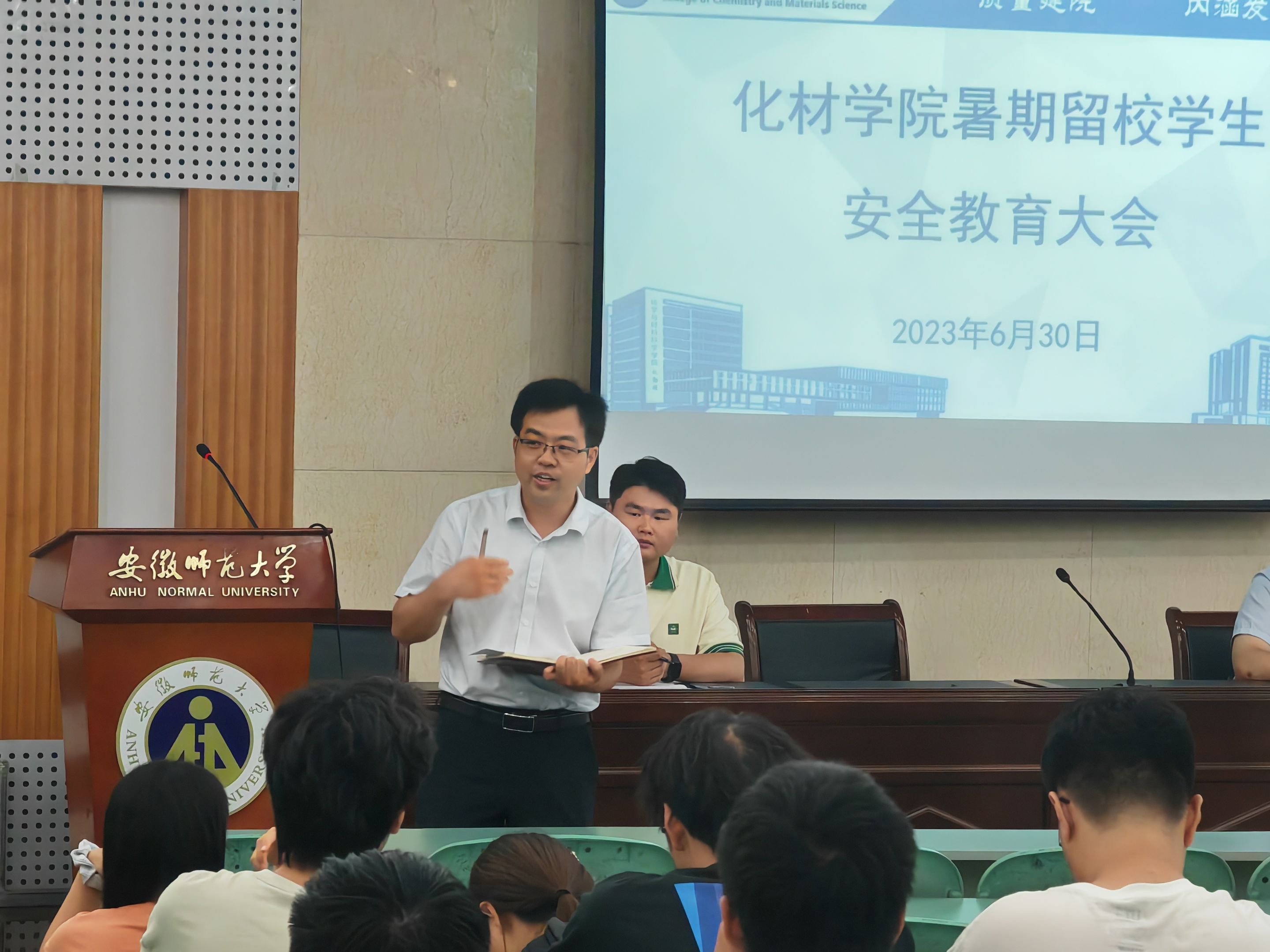 李古州分别作总结发言,他分别通报了2023届考研和就业数据,表达了校院两级对留校学生学习生活的关心以及对安全工作的重视,结合实际案例,强调了防诈骗、防溺水、寝室用电等方面的安全问题,叮嘱同学们紧绷安全之弦,经常主动与老师、父母沟通联络。希望同学们在暑期制定好学习计划、调整好心理状态、克服天气影响、严守安全底线,度过一个平安、充实、健康的暑期。