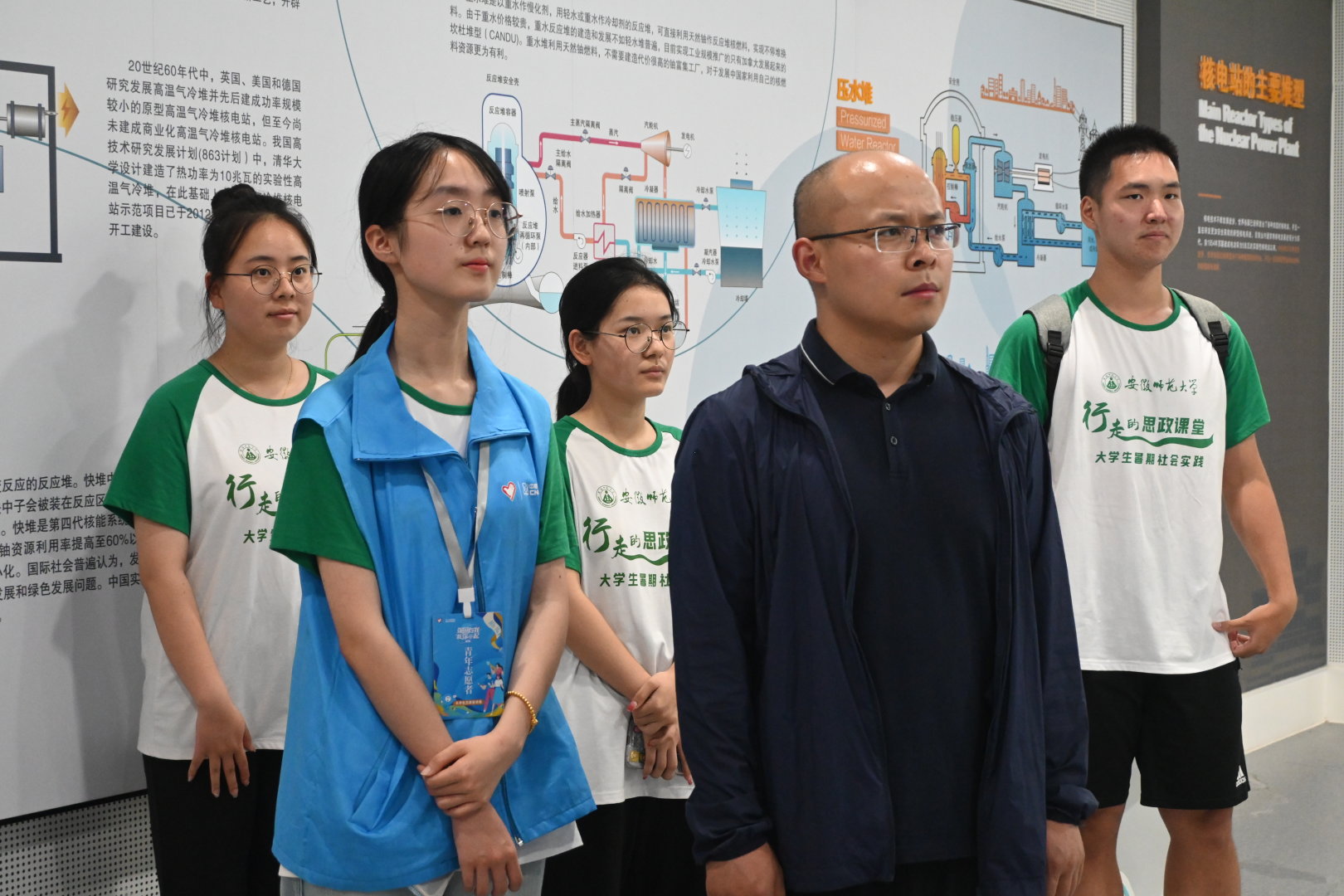 赴芜湖“强‘核’报国,星向未来”本科生社会实践团队,共同参观安徽省核科技馆,听取学生讲解“两弹一星”精神,并开展思政课。孙辉老师指出,暑期社会实践团队成员之间应该既要有明确的责任分工,又要加强彼此之间的联系,增强团队成员的集体责任感。同时,针对宣讲的主题,将思想政治融入到“两弹一星”精神之中,提出“‘两弹一星'精神独立自主”的概念,教导团队成员要在完成自身学业基础追求的前提之下,尽可能地追求精神方面的成功。今后要将“两弹一星”精神融入思政课教学中,充分发挥意识的能动作用,为培养中国特色社会主义事业的建设者和接班人提供思想引领。