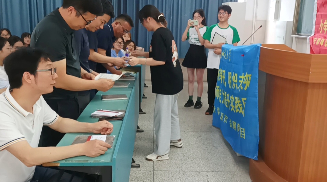 文创笔记本以作留念。一百张手写明信片承载着同学们两周的回忆和感激,被送到各位老师的手中。一笔一划印刻着同学们对各位老师的喜爱和不舍,字里行间萦绕着杏坛余香。王成老师用“感动、和谐、融洽”三个词概括了他在两周时间内的感受,并深情寄语同学们要将教育当做终身事业做到最好。任峰老师也表示:同学们应当始终践行“厚德、重教、博学、笃行”的校训,锲而不舍、永争先锋!