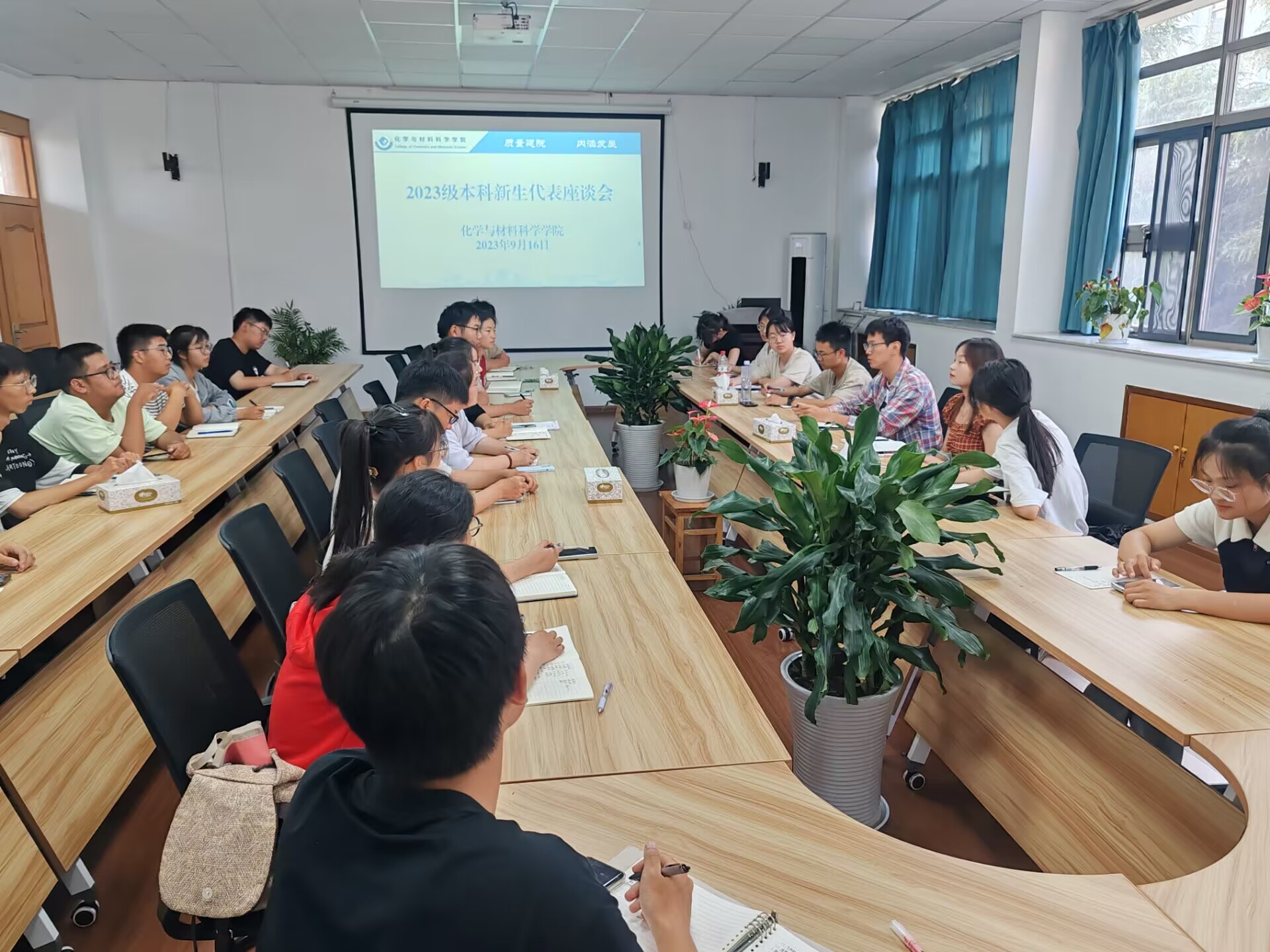 为全面掌握学院2023级新生开学以来的思想动态,进一步做好大学生思想政治教育工作,不断提升立德树人工作实效,9月16日,学院在学院北楼9号楼205会议室召开2023级本科新生代表座谈会,2023级辅导员王霞、梁成和各专业新生代表参加活动。
