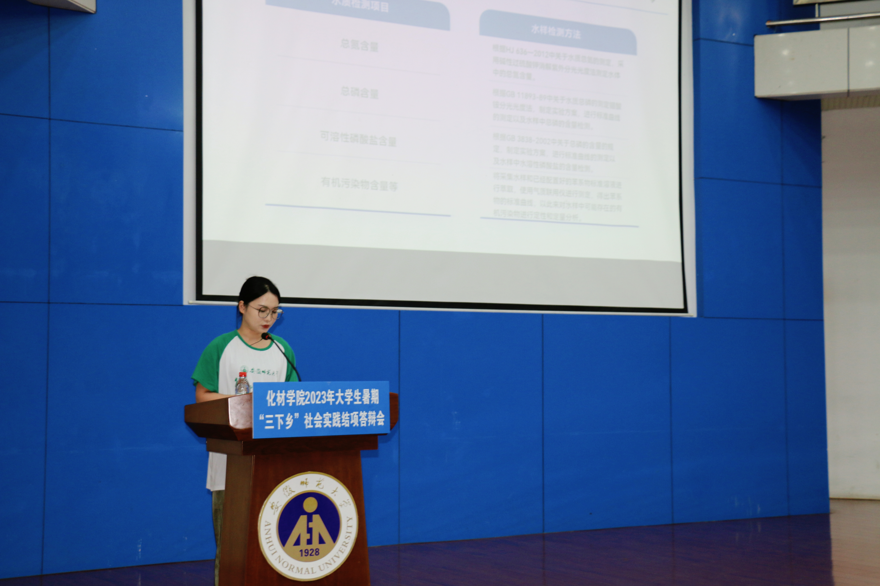 组织委员秦晓璐对暑期社会实践情况进行了总结概述,今年暑期社会实践共有665人参与,实践团队共开展理论宣讲61场次、主题教育16场次、形成论文或调研报告28篇、新建3个实践基地,共开展宣教支教活动近500小时,录制实践微视频30余个,用爱心和责任心奏响“永远跟党走 奋进新时代”的主旋律。随后各团队按抽签顺序,采用演示文稿与演讲相结合的形式,逐步从前期准备、实践主题、开展过程、实践成果等多方面进行展示,充分利用四分钟的时间将实践情况娓娓道来。汇报过程中各团队主题明确、逻辑清晰,用生动的照片、真实的数据展现了团队的努力和新时代青年学生的风采。