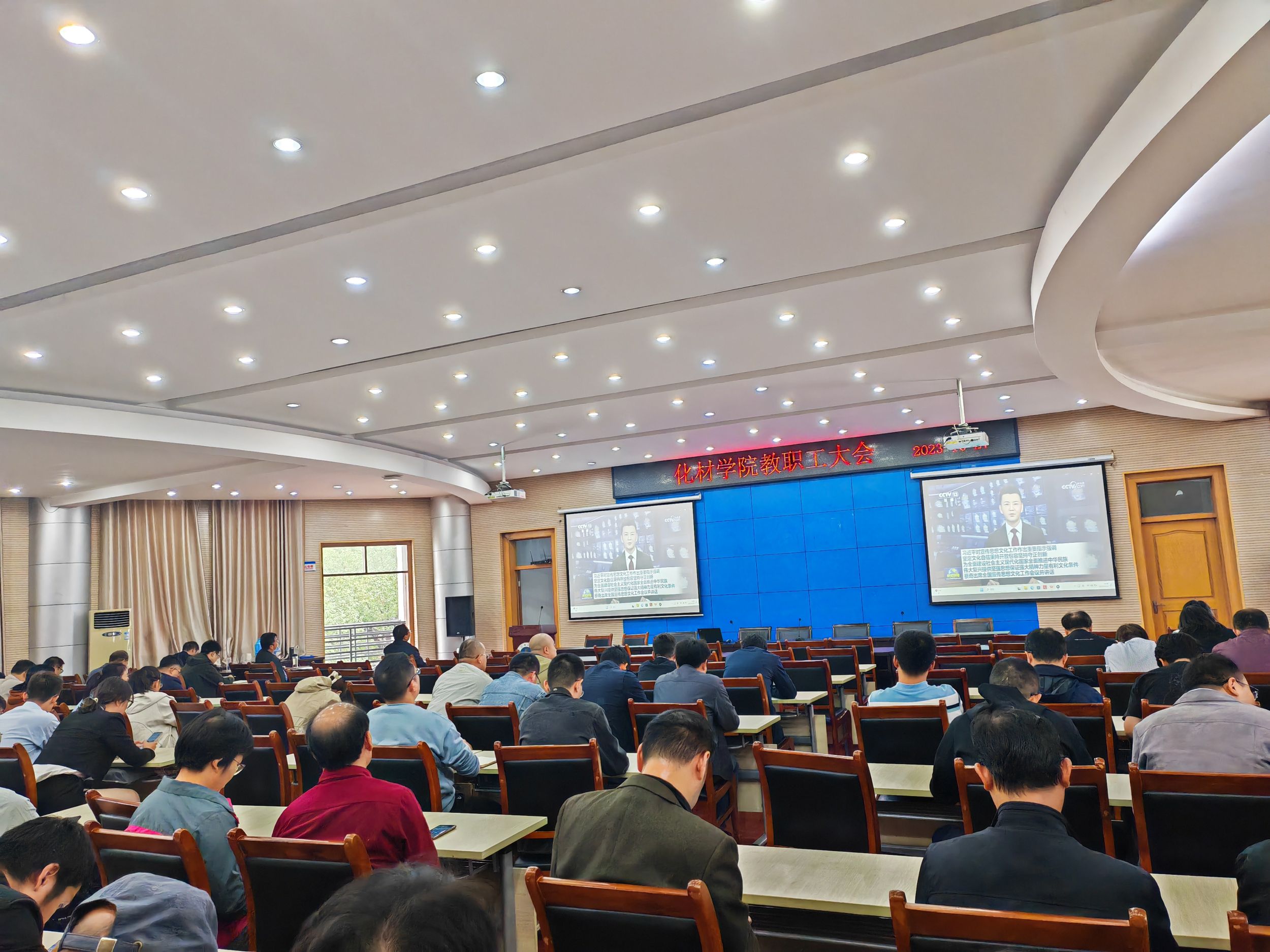 于花津校区会议中心第三报告厅召开教职工大会,学习习近平总书记对宣传思想文化工作作出的重要指示精神和全国宣传思想文化工作会议精神。学院全体教职工参加大会,学院党委书记汪俊武主持会议。