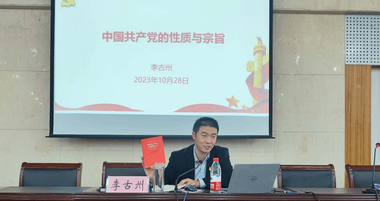 永葆性质,牢记宗旨。李古州以《中国共产党的性质和宗旨》为题为全体学员讲授了第一堂课,他围绕两个先锋队、一个领导核心、三个代表、一个最终目标,详细介绍了中国共产党的性质。从宗旨的概念、党的根本宗旨、党对青年的殷切希望三个方面,全方位、多角度的介绍了中国共产党的宗旨。结合时事热点,通过列举实例给学员们上了一堂别开生面的党课,他强调,同学们都应自觉做远大理想和共同理想的坚定信仰者和忠诚实践者,用信仰点亮人生、用理论坚定自信、用奋斗成就梦想。