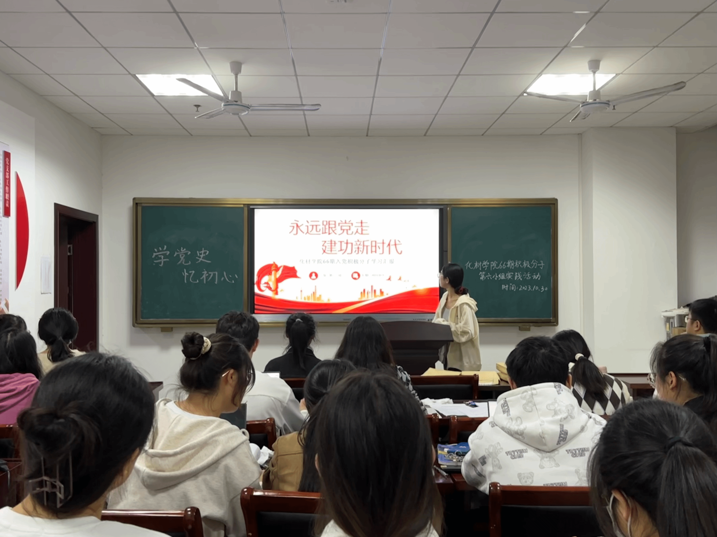 培训期间,同学们集体观看了《中国共产党章程》《先锋》等视频,党史启迪未来,观看视频同学们更加深入了解党的历史,在党员先锋的英勇事迹中,在入党时的铮铮誓言中,感受党员的理想、信仰,心中时刻装着党的利益和人民的利益,始终不忘初心。党员先锋不仅给同学们带来了无穷的力量,而且受到了深刻的教育启迪。