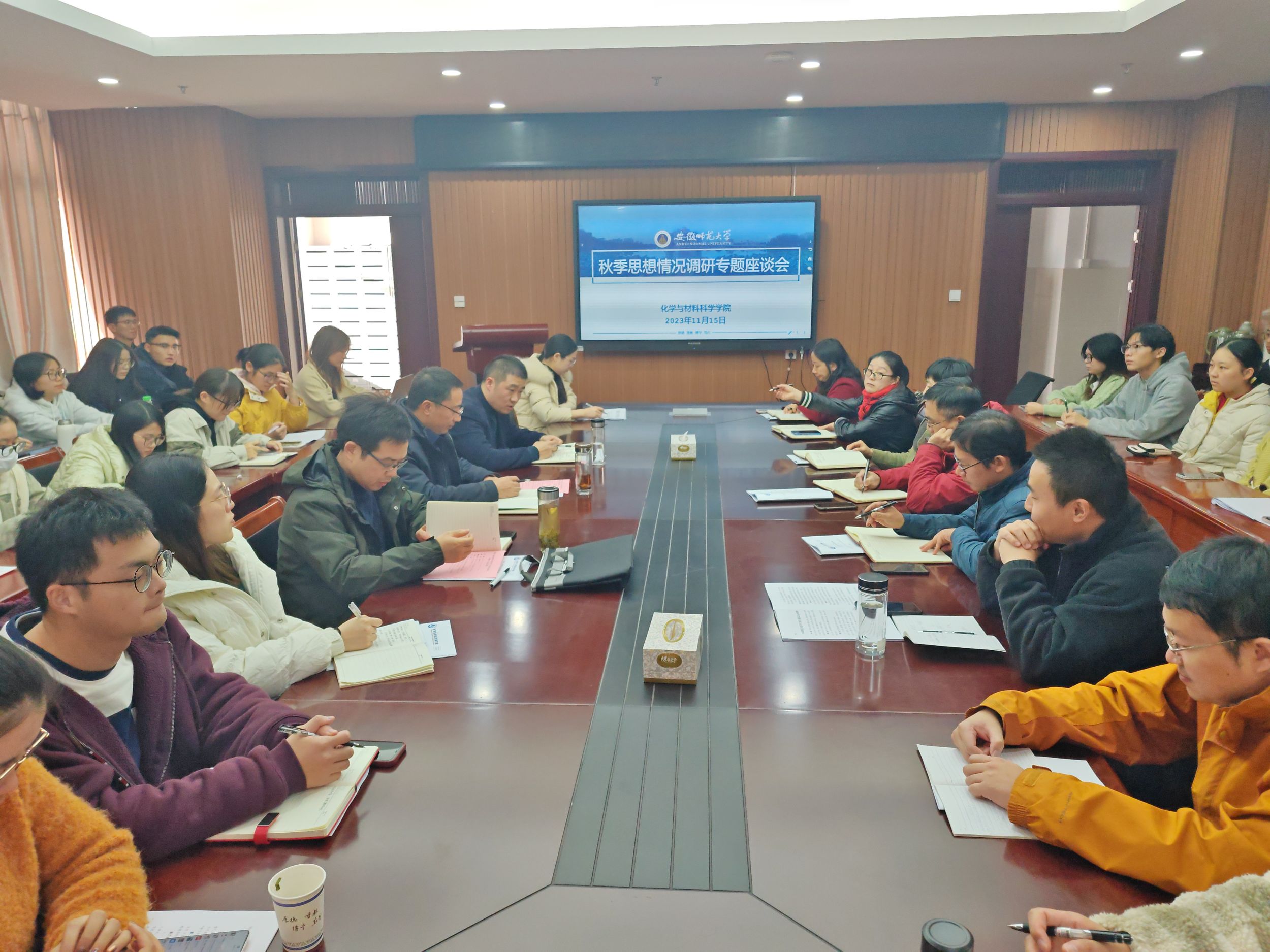 在礼勤楼702会议室召开秋季本科生思想情况调研座谈会暨期中教学座谈会,学院党委书记汪俊武,副院长周双六、方臻,各专业系主任,教学科研秘书,全体专兼职辅导员及各班级思政委员、学生代表参加此次座谈会,会议由学院党委副书记李古州主持。