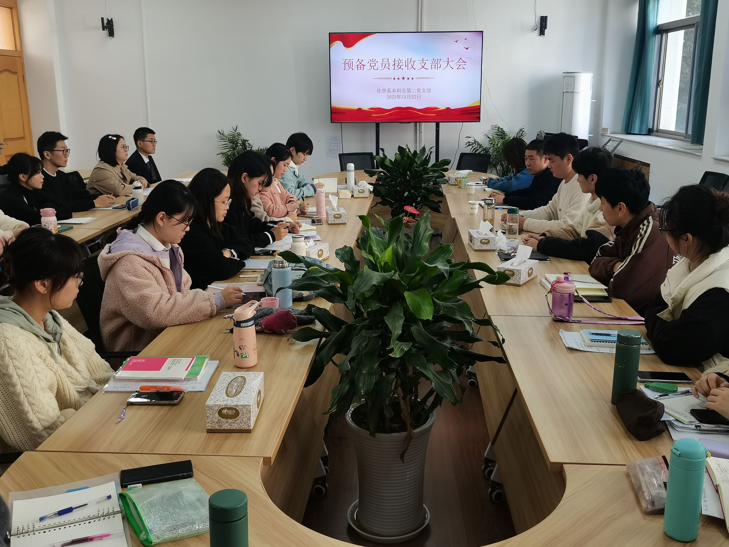 本网讯(化学系本科生第一党支部 王瑀辉)2023年11月22日上午,化学系本科生第二党支部于学苑北楼9号楼205会议室召开了2023年下半年党员发展支部大会。本次支部大会应到会正式党员3人,实到会3人,党员人数符合组织规定,学院党委副书记李古州列席指导,会议由支部书记陶勇主持。