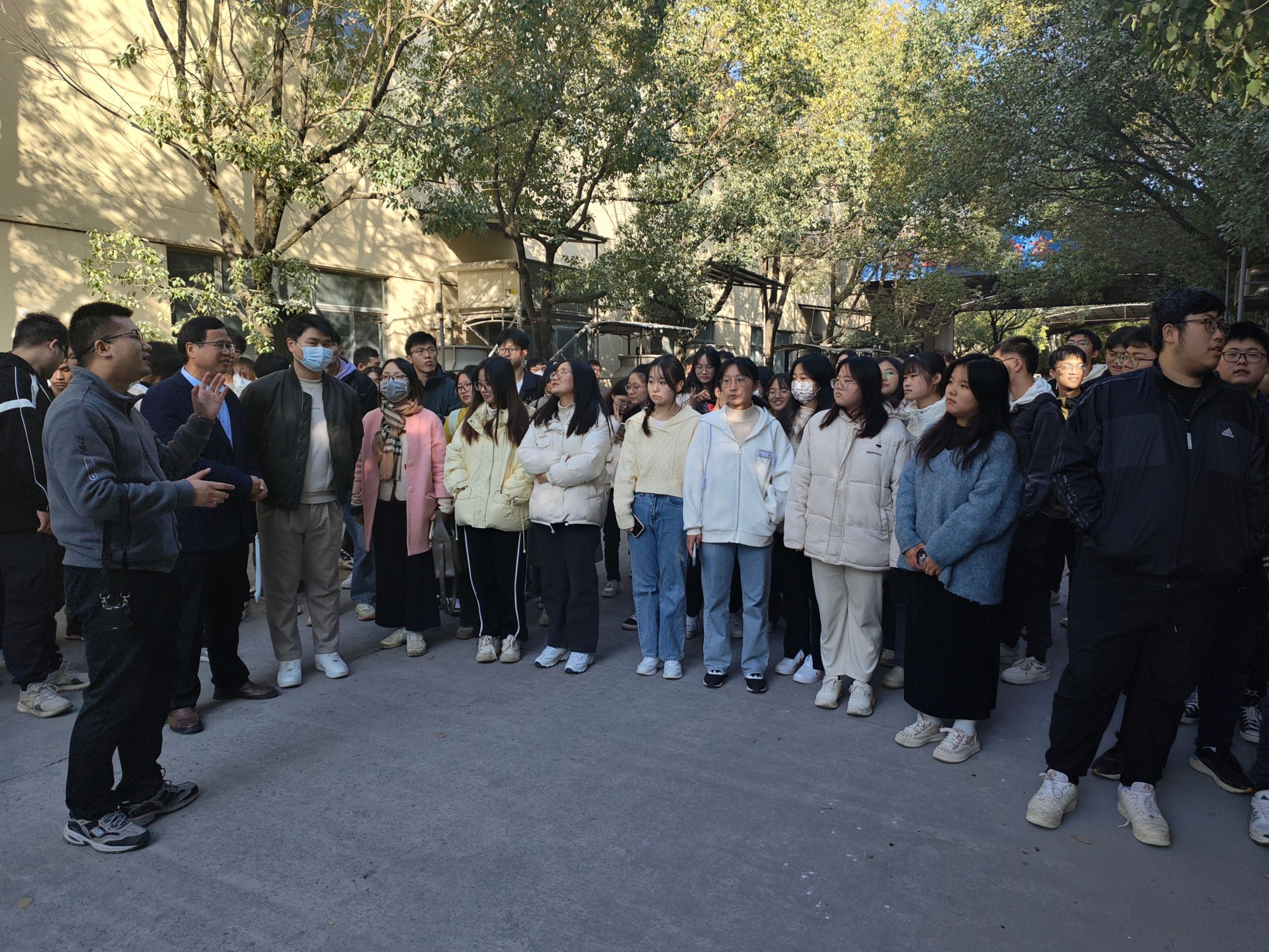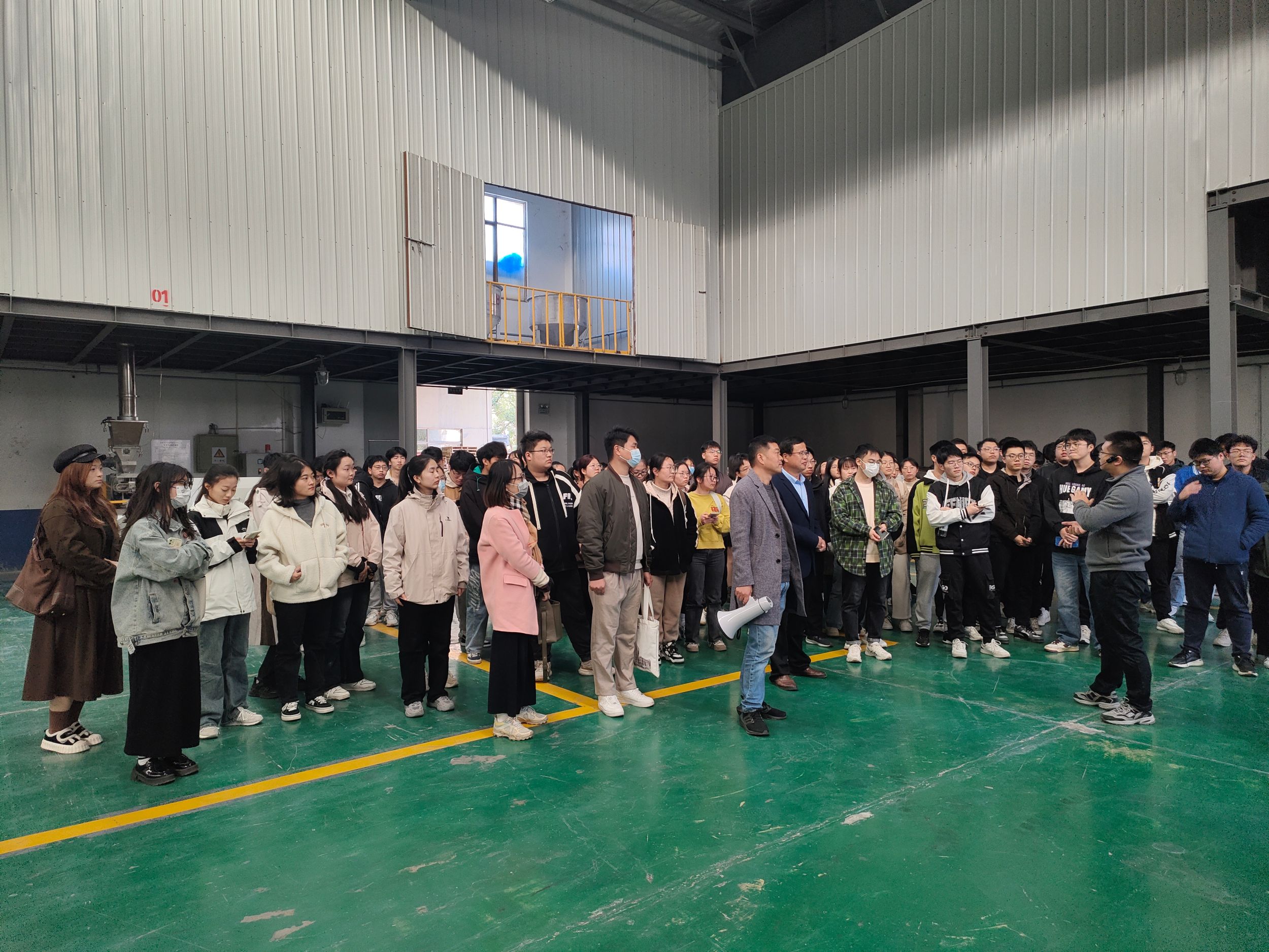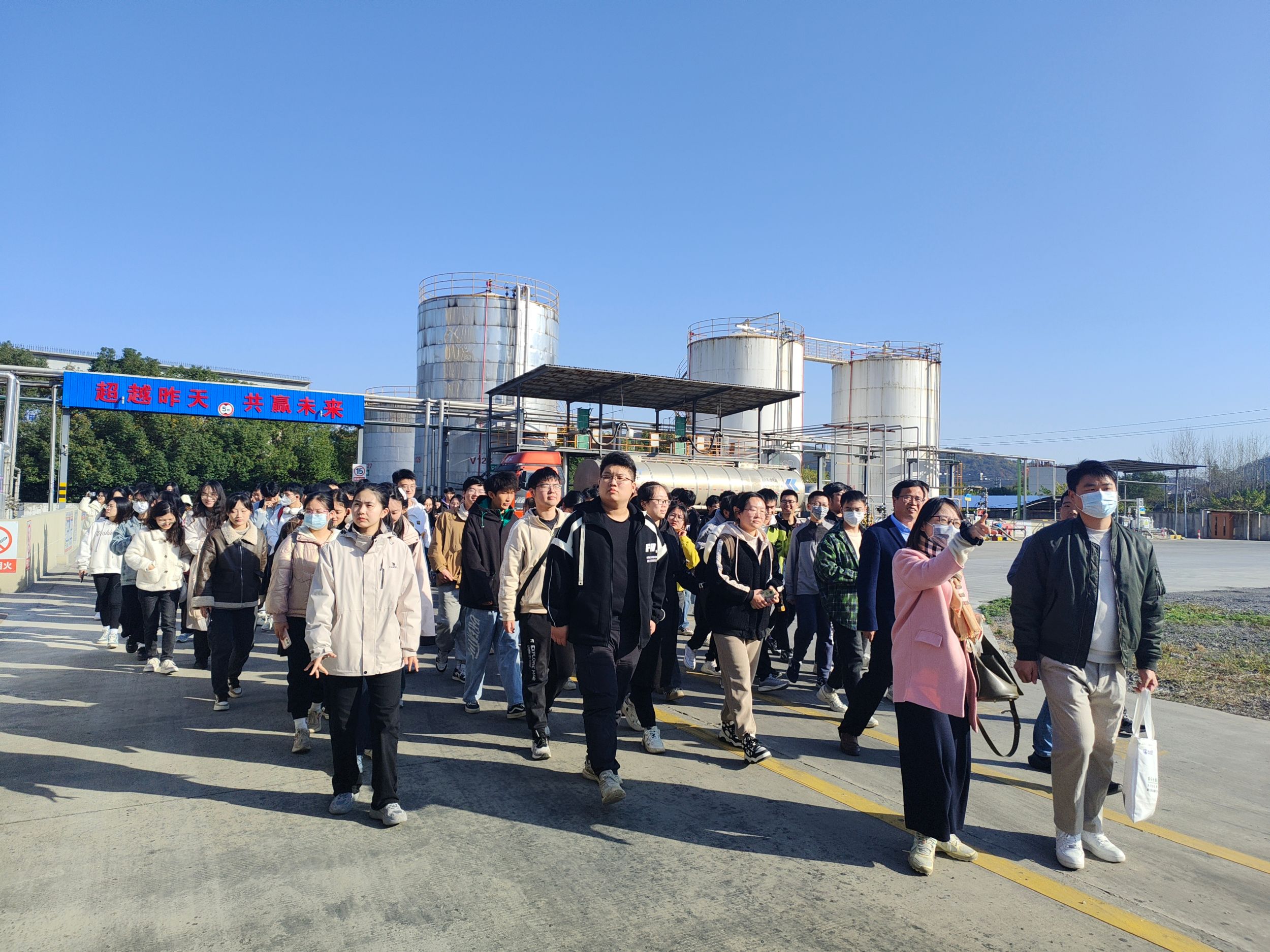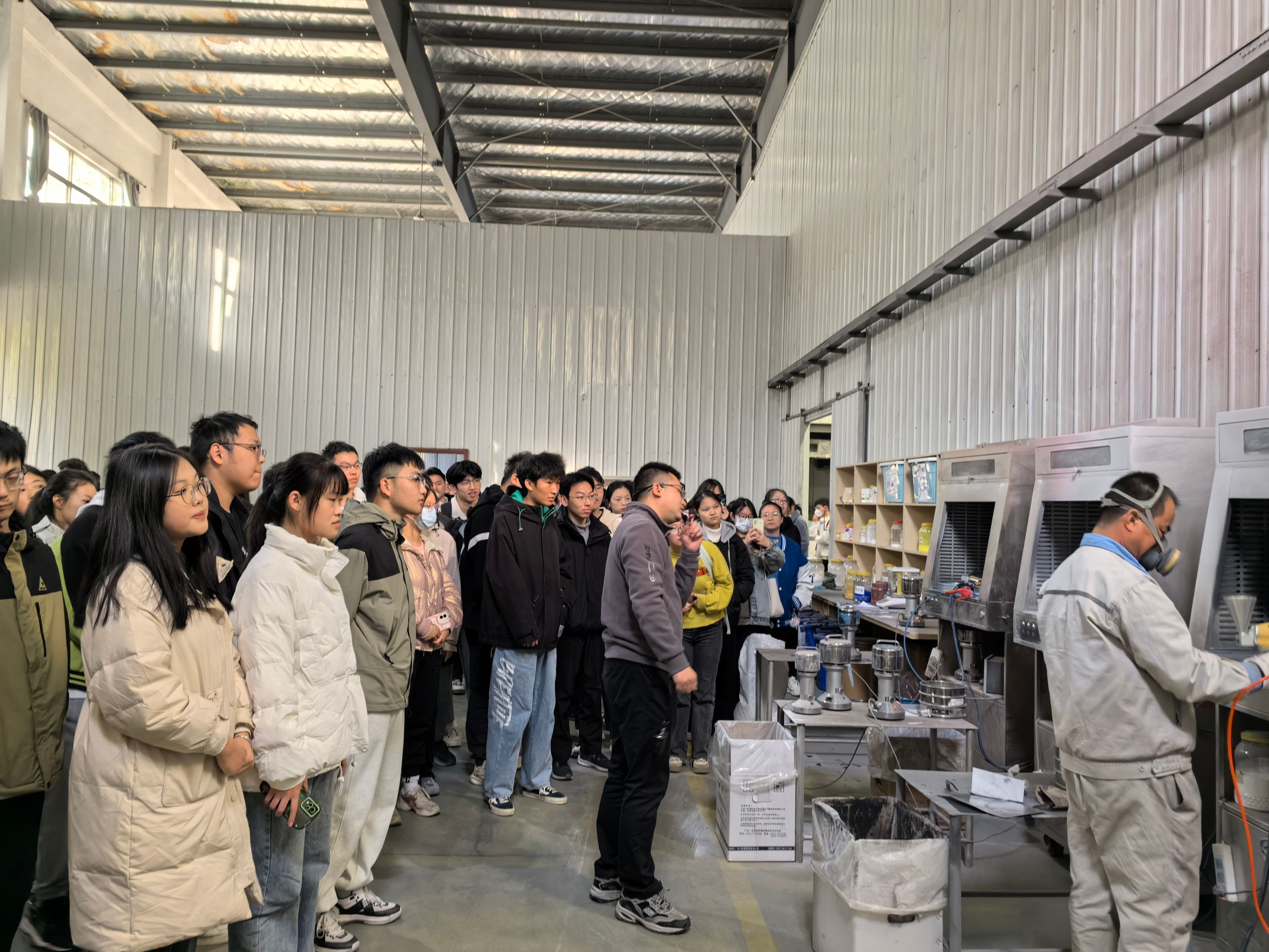 在企业负责人的带领下,师生一行一同参观了自动化生产车间、综合仓库与实验室,同学们对于全自动化生产线中各种大规模设备运作产生了浓厚的兴趣,从与工程师之间的交流中,大家感受到先进技术在化学工程生产与新材料研发过程中的重要地位,亲身体会到科技创新对行业发展的推动力。