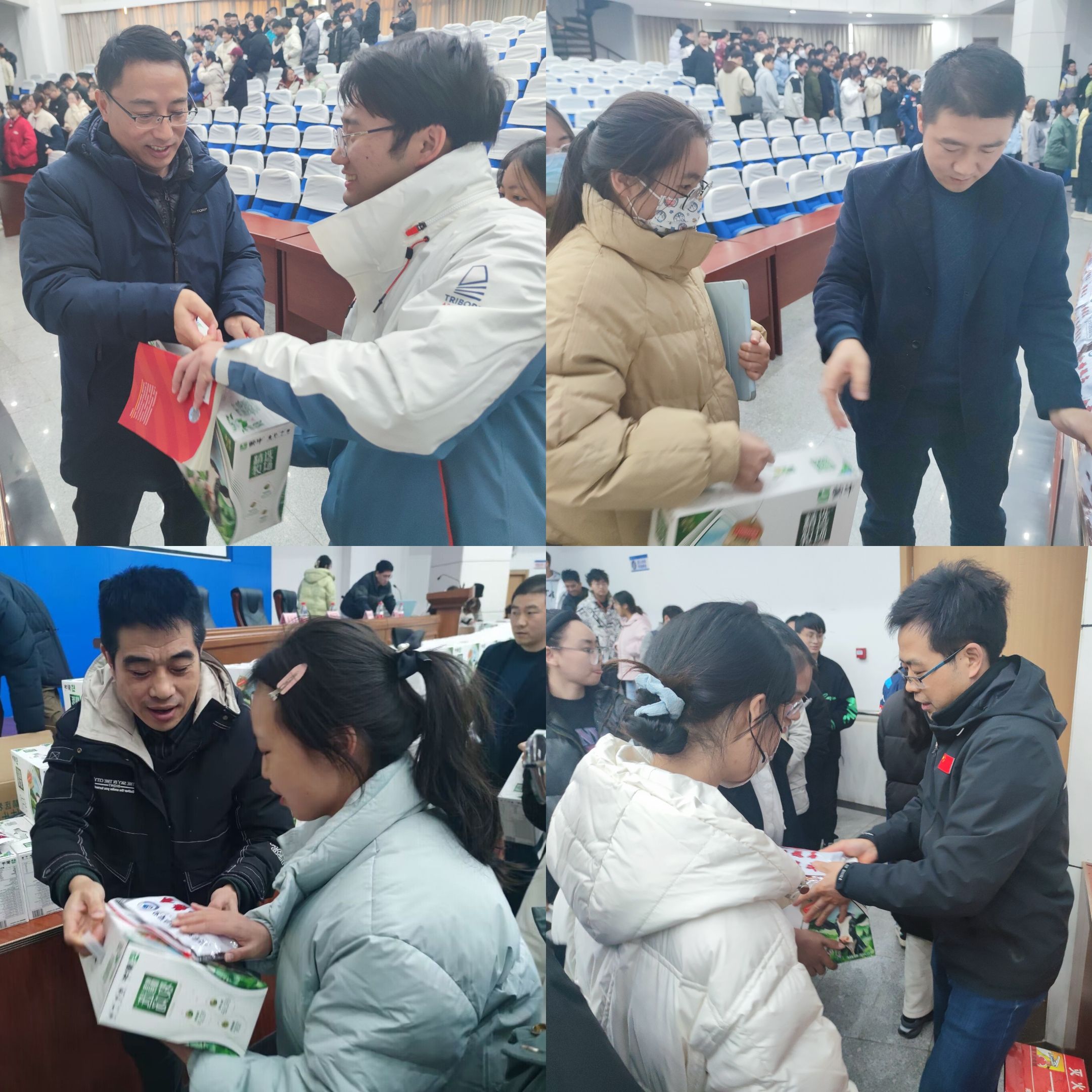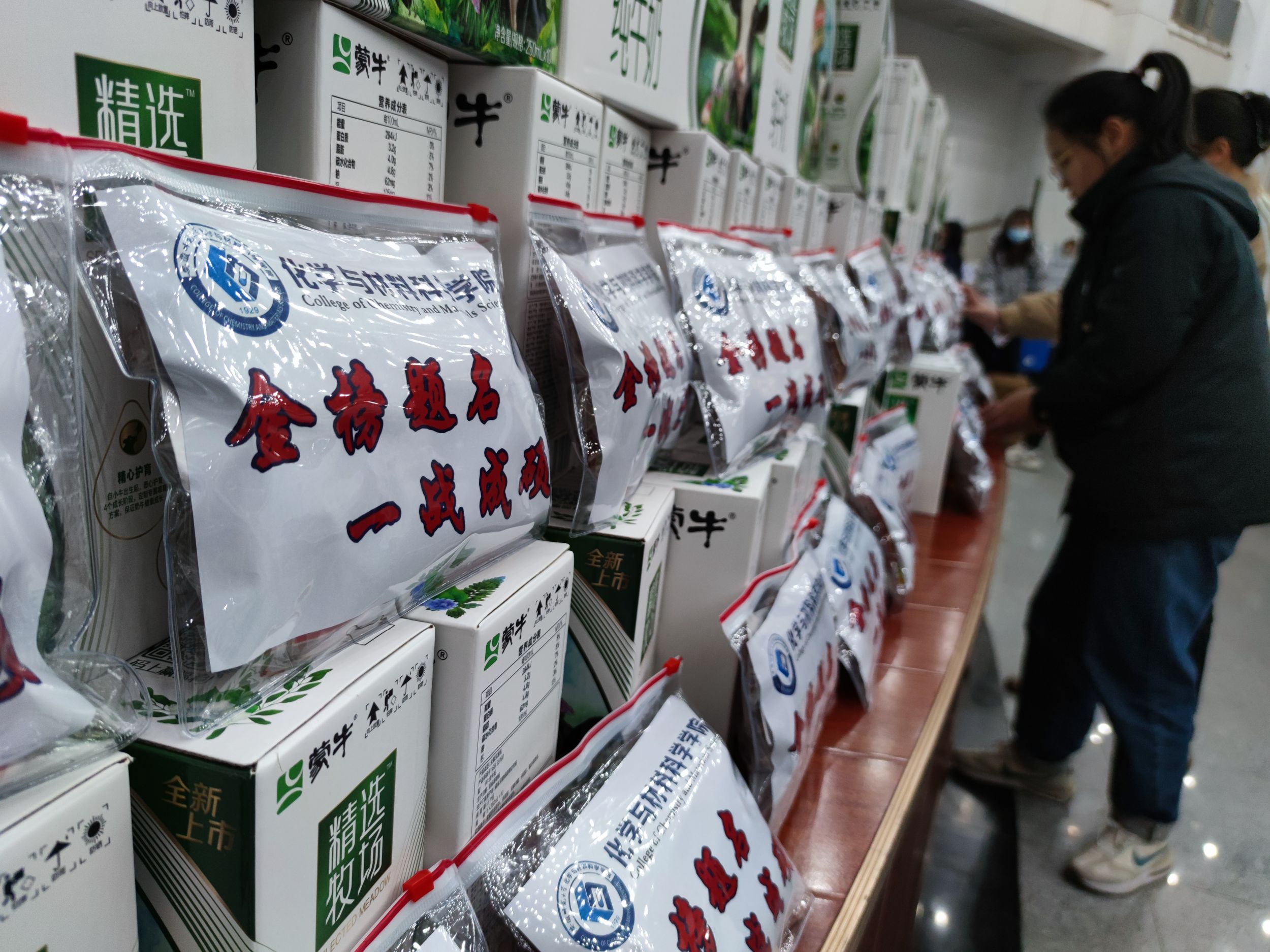 学院领导为考研学生发放“励志加油包、文具助力包、能量补给包”,“励志加油包”上的“金榜题名,一战成名”祝福同学们都能就此扬“帆”起航,心想事成,一战成硕;“文具助力包”希望同学们在考场上妙笔生花,金榜题名;“能量补给包”期待同学们暖冬心事成,幸运伴你行,“橙”功上岸