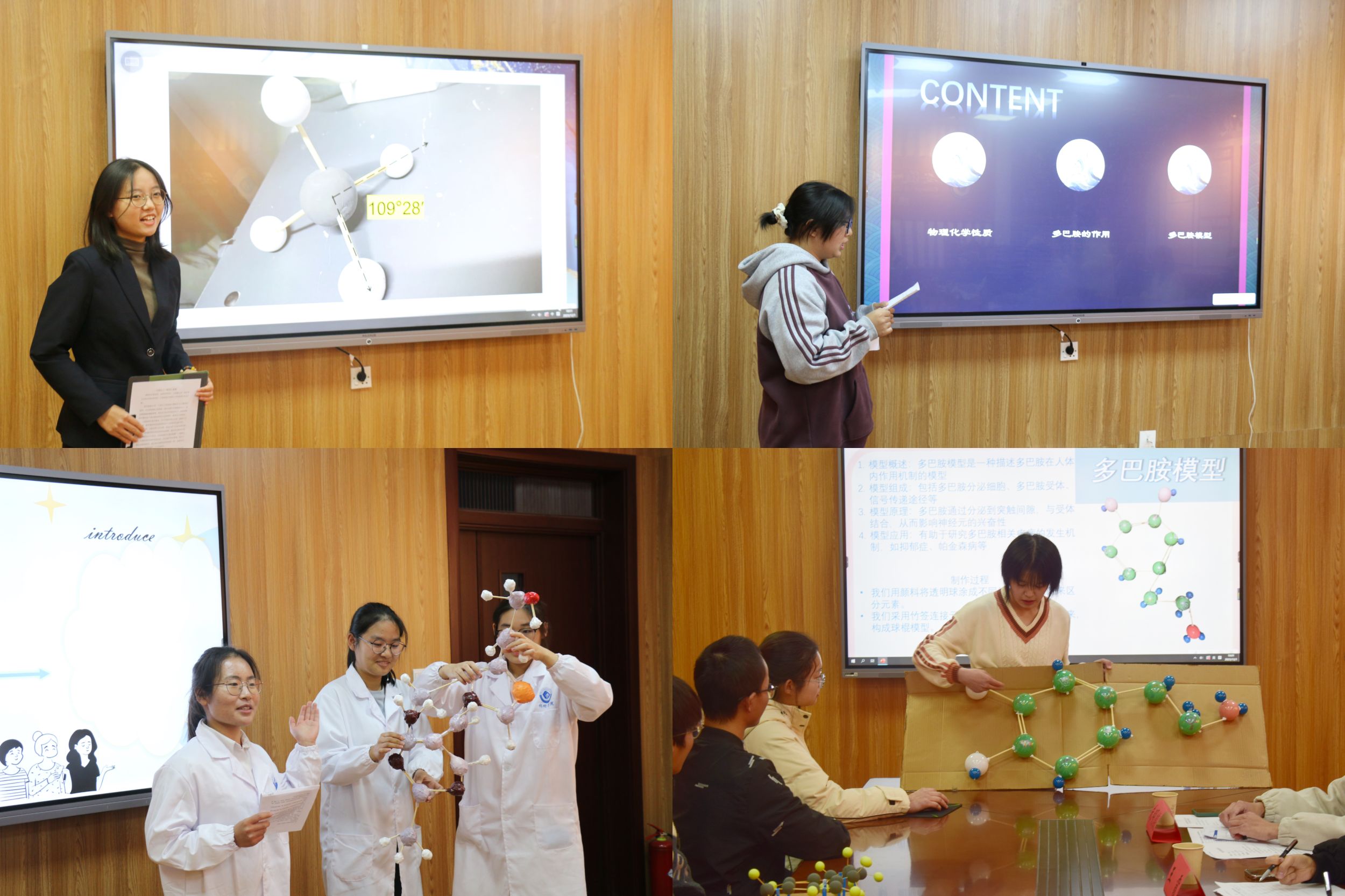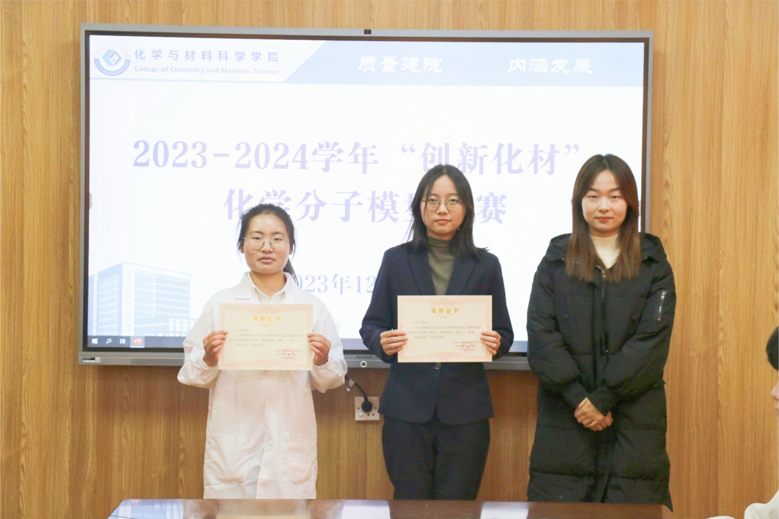 在礼勤楼707室举行2023-2024学年“创新化材”化学分子模型大赛,学院团委副书记王霞、朱梦茹担任评委。