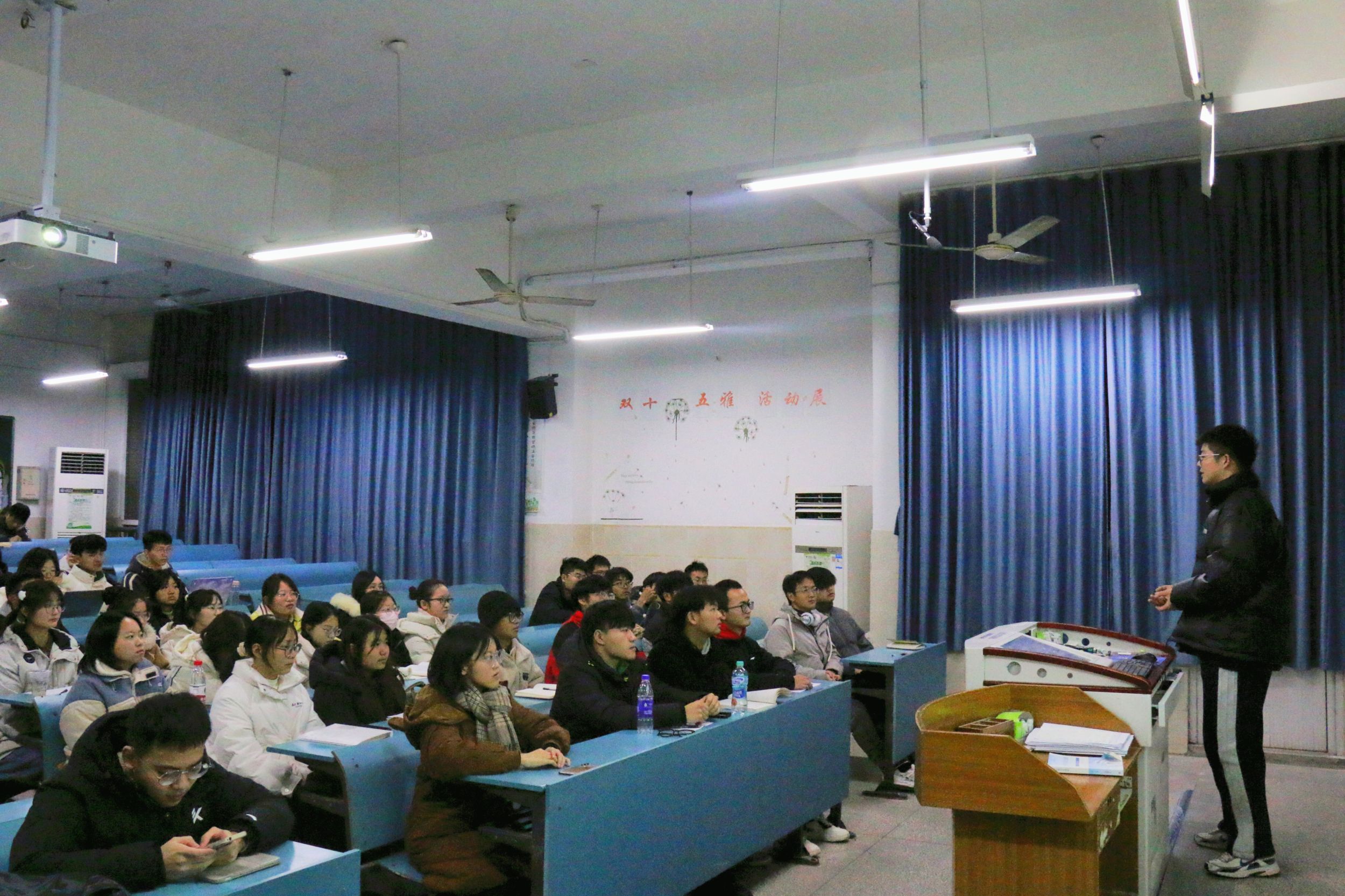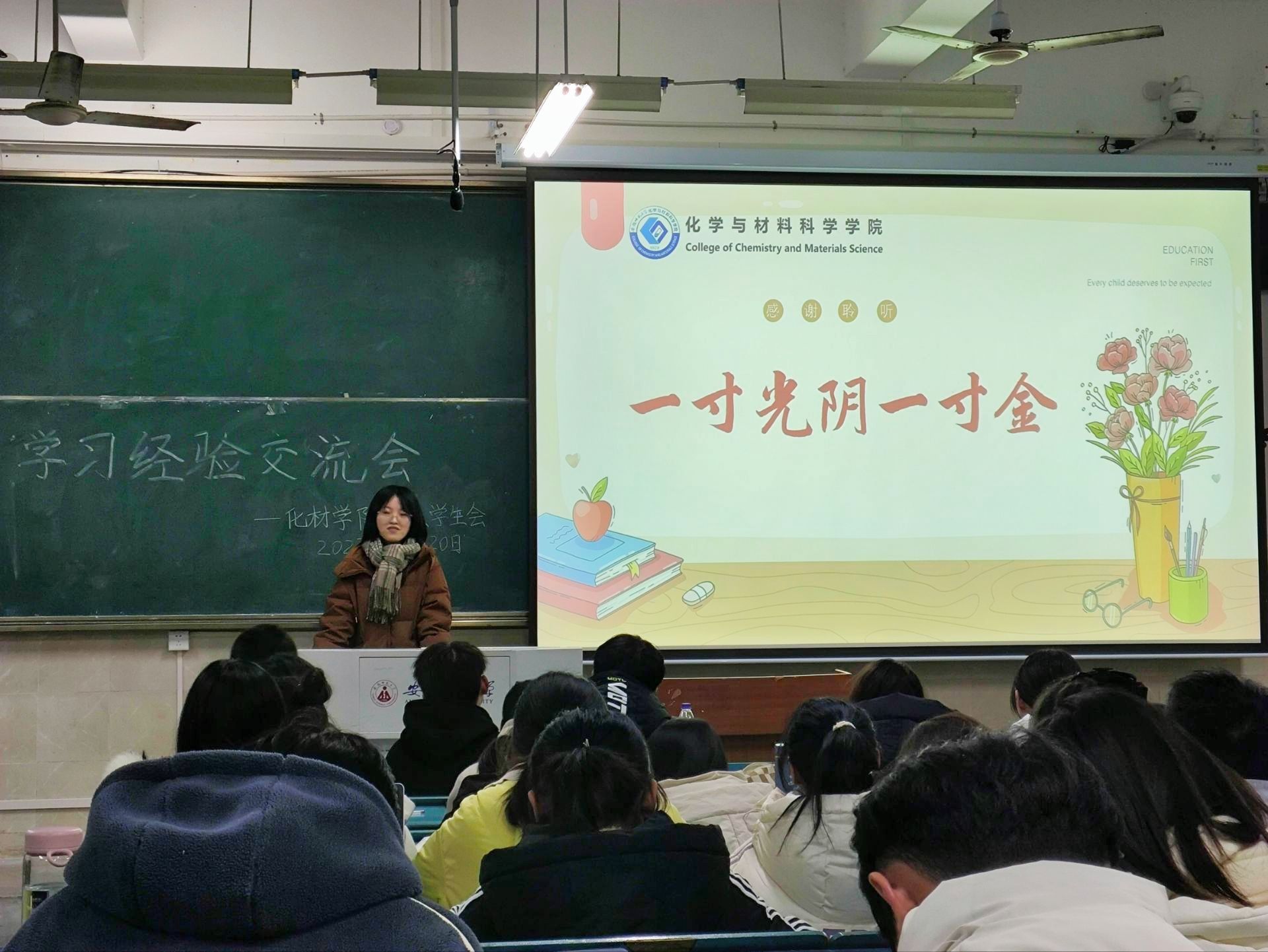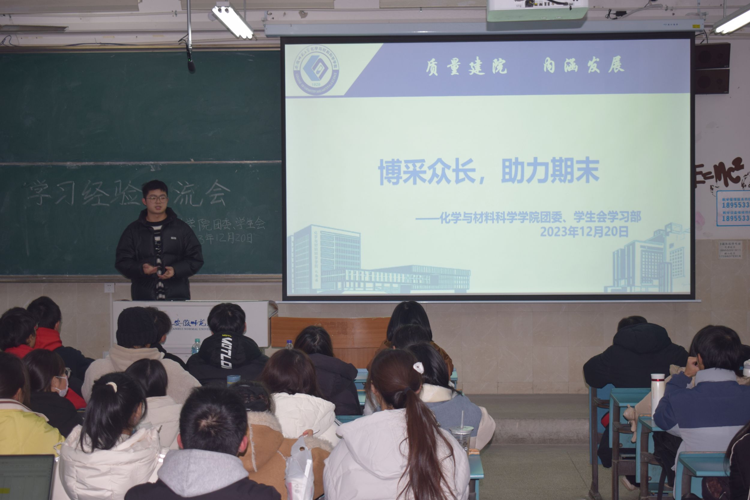 会议中7位优秀的学长学姐依次给大家分享了在学习生活中的宝贵经验,其中有高数、线代和四大化学等学科的学习方法,还有竞赛、绩点及如何完成个人培养方案等方面的心得体会。交流会上学长学姐们多次强调大学规划的重要性,以自己的求学经历为例,为学弟学妹们树立了良好的榜样。他们或慷慨激昂,或耐心教导,或娓娓道来,或倾囊相助,热情为学弟学妹们解疑答惑,赢得台下掌声连连,也温暖了冬日里学弟学妹们的心。