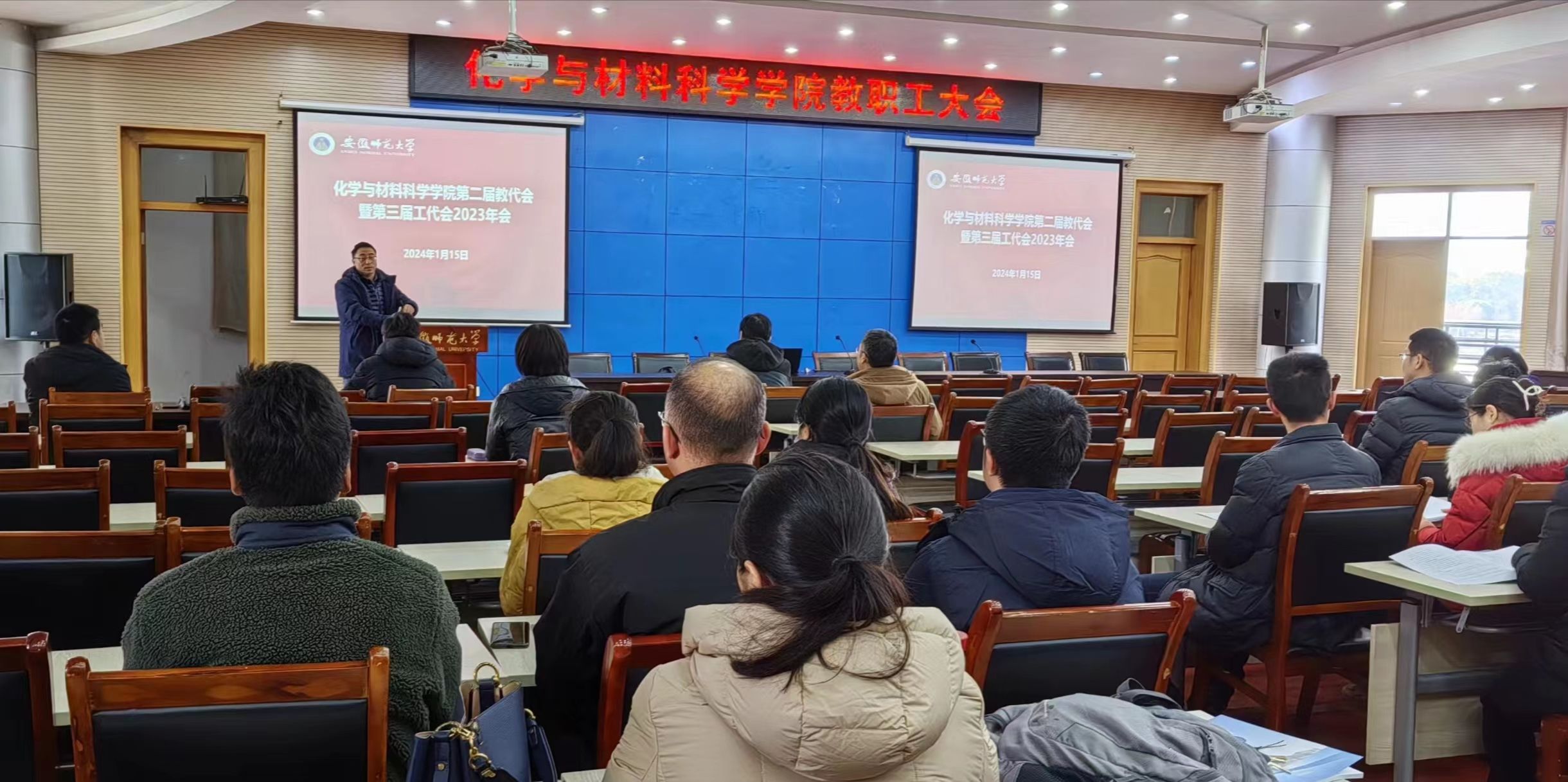 召开第二届教代会暨第三届工代会2023年会,学院全体教职工出席会议。会议由学院党委书记、二级教代会执行委员会主任汪俊武主持。