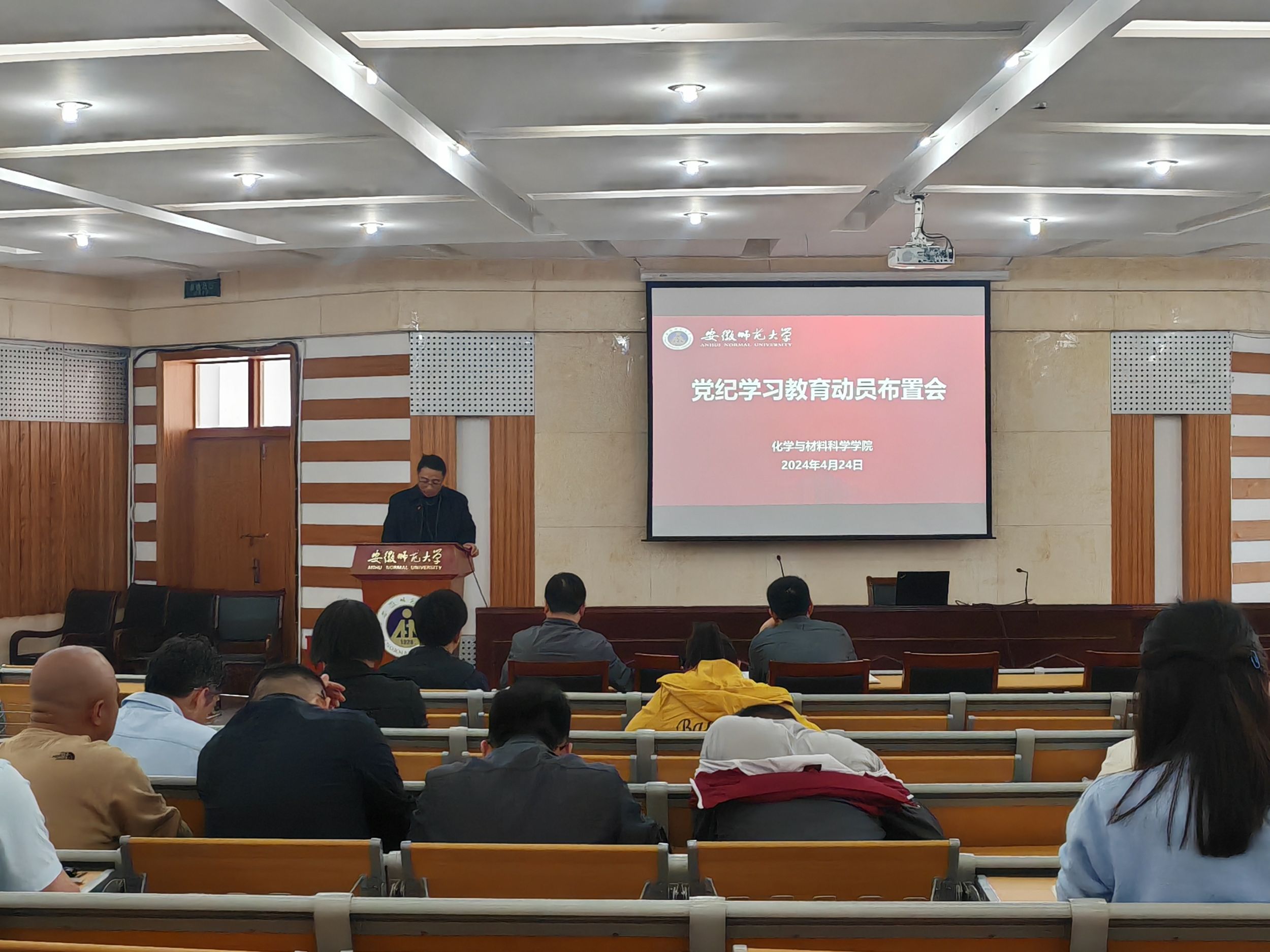 4月24日下午,化材院召开教职工大会专题学习习近平总书记关于党纪学习教育的重要讲话和重要指示精神,动员部署学院党纪学习教育工作,全体教职工参加会议。会议由学院党委书记汪俊武主持。