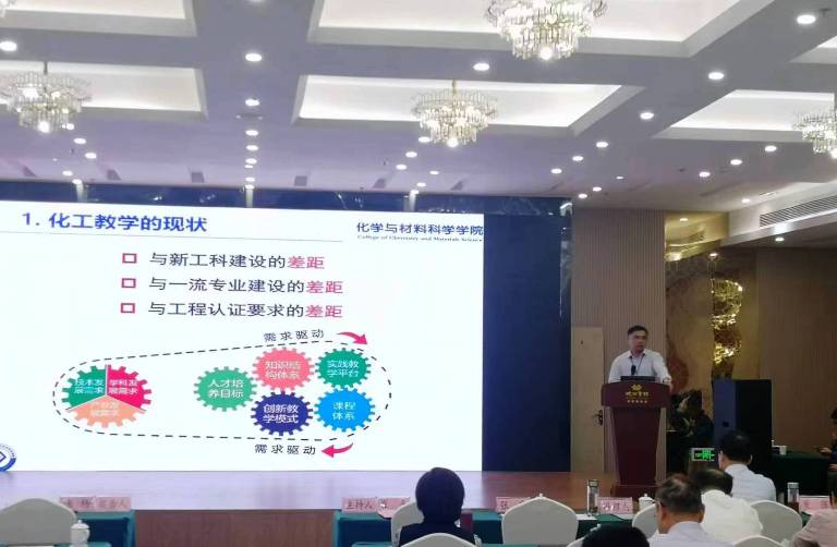 副校长高峰教授、副院长方臻教授率化工系教师罗时忠教授、周映华教授、王伟智副教授和何心伟副教授等参加此次会议。化工系主任周映华应邀在大会作题为《以工程素养提升的一流课程建设的探索与实践——以煤制甲醇虚拟仿真和化工基础为例》的专题报告,从建设背景、建设举措和建设成效等方面介绍了我院化工课程建设取得的成果,并且与会人员进行了深入的探讨和交流。通过参加本次会议并与业内相关专家的交流,加深了专业教师对产教融合与专业建设、科创融汇与科技创新的了解,对化工专业建设、课程建设起到了积极推动作用。
