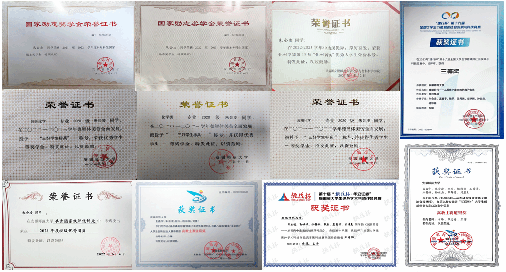 精诚所至,金石为开。进入大学来,他坚持勤奋学习、注重全面发展,精进各项技能。大学四年,他的学业成绩和综测成绩始终位列专业前三、班级第一。他连续四年获校一等奖学金、“三好学生标兵”称号,获国家励志奖学金、“陈礼勤、郭锐评”学业奖学金和学科竞赛、科研达人奖学金等,2023年获学院“化材菁英”优秀大学生荣誉称号,2024年获评安徽省普通高等学校优秀毕业生称号,目前已推免至中国科学技术大学直接攻读博士学位。