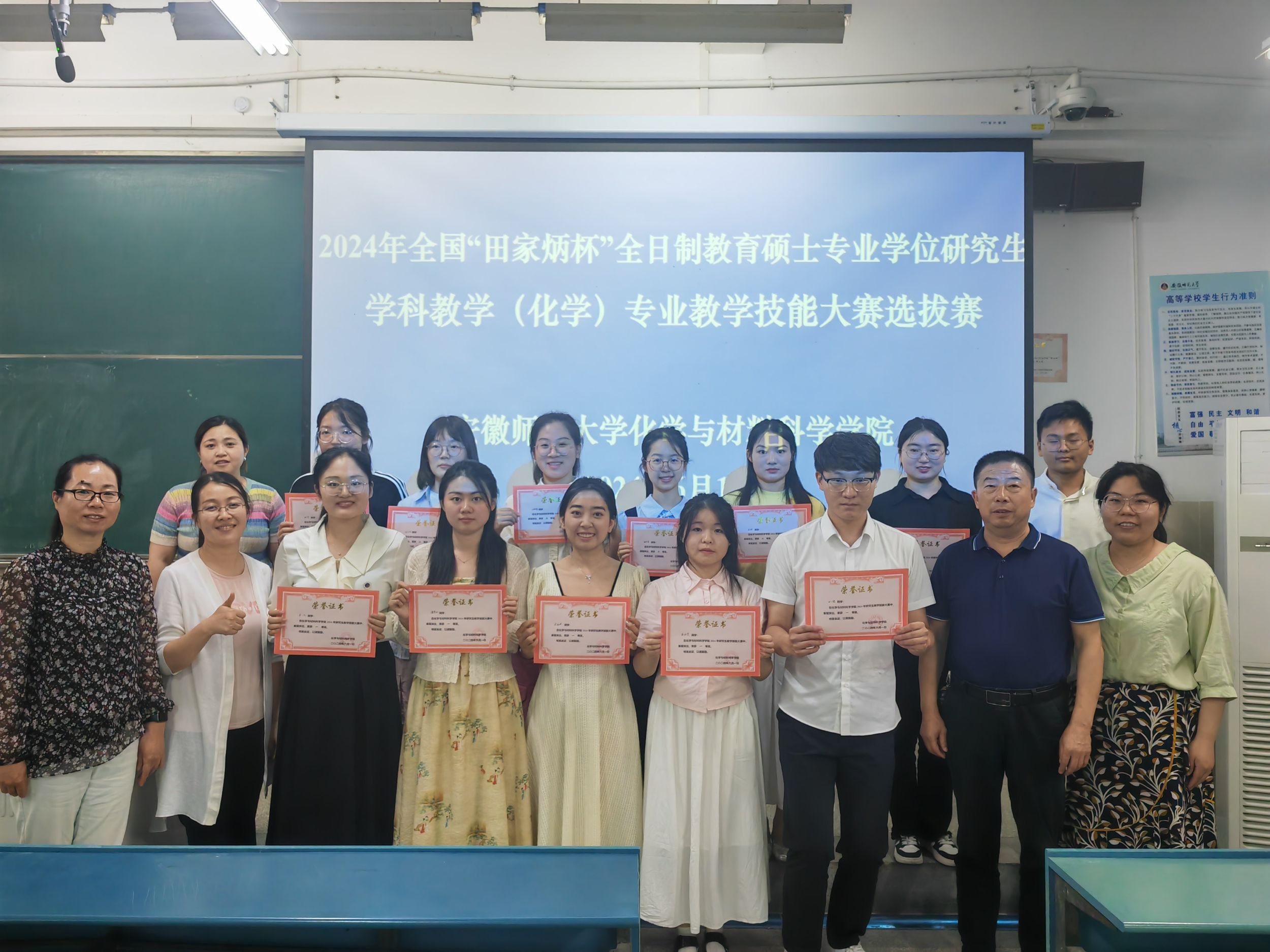 参加2024 年全国“田家炳杯”全日制教育硕士专业学位研究生学科教学(化学)专业教学技能大赛。