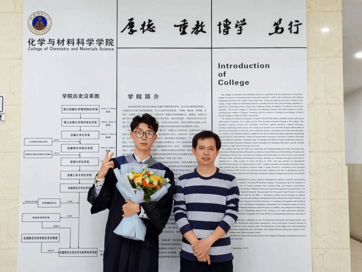 他曾说过:“无论我将来从事什么样的工作,学习到什么样的知识,我都希望坚定的站在有关化学的方向上”。热爱与追求,成为了他坚持奋斗的动力,他相信自己终将会寻找到一个适合自己,施展自我的路。