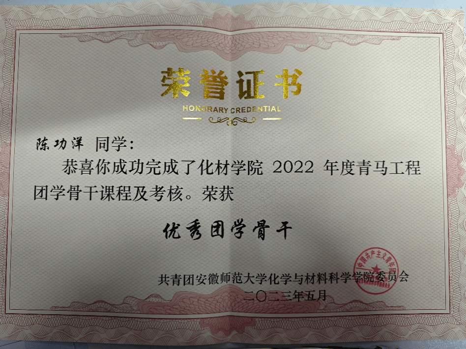 作为青年学生,他始终以饱满的学习热情和端正的学习态度对待专业学习,认真上好每一节专业课,做到课前预习和课后复习,并认真做好笔记,积极与任课教师讨论问题。大学期间期间,他荣获两次校级三等奖学金、一次校级二等奖学金、“优秀学生干部”荣誉称号。此外,他在大二学年便注重创新意识和创新能力的培养,在认真做好本科生实验课程的同时,参加大学生创新创业训练计划省级立项项目,培养创新能力;还积极主动地跟随毕设导师深深扎根于实验室中探索新的化学合成方法,为研究生阶段的学习打好基础。