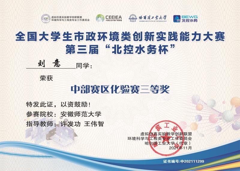 他重视科研实践,提升专业技能。化学是一门以实验为基础的学科,他深知提高动手能力的重要性,大一便主动申请加入导师课题组深入学习,主持一项国家级大学生创新创业训练项目,目前已参与发表SCI论文1篇。严谨、细致、耐心、创新是他在实验室的学习中对自己的严格要求。坚持学以致用,竞赛成果显著。他积极参加各类学科竞赛,曾获得“天正设计杯”第十六届全国大学生化工设计大赛国家级二等奖、全国大学生市政环境类创新实践能力大赛中部赛区化验赛三等奖;作为团队负责人参加安徽省第九届“互联网+”大学生创新创业大赛及第十届“挑战杯”大学生课外学术科技作品竞赛,均获得省级银奖。累计获得国家级奖项2次,校级以上奖项15余次 。
