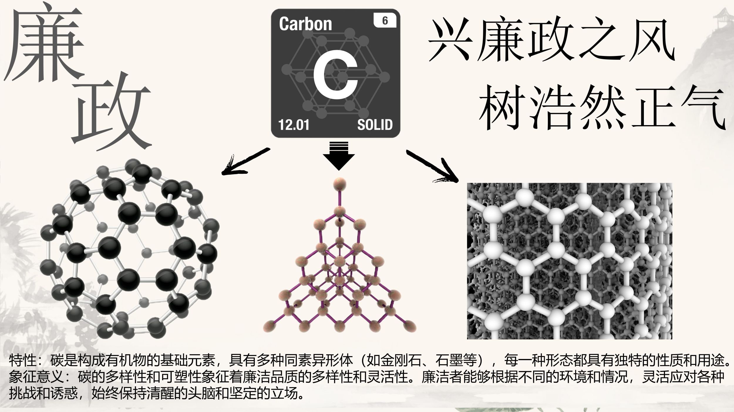 各党支部结合学科特色,利用“专业元素”,从元素性质观照廉洁精神,在方程式中感知物质变化,在蒸馏中感受内心清澈,从化学反应中体悟“清”与“浊”,在晶体中体悟规则,警示党员要时刻洗涤心灵,营造风清气正的文化氛围。