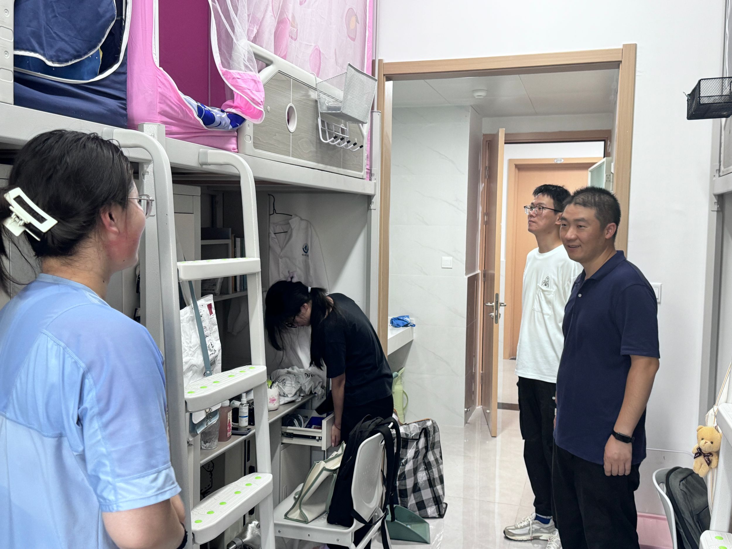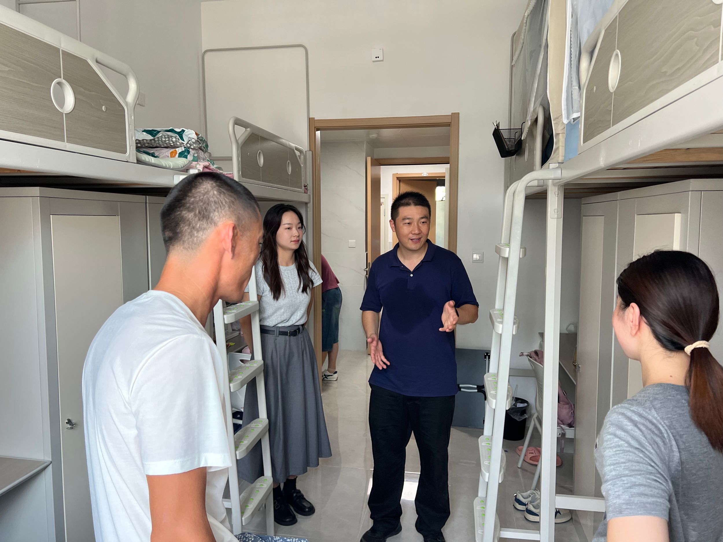 深入宿舍,暖心嘱托。宿舍搬迁顺利完成后,学院党委副书记李古州、2023级专职辅导员来到冬和园新宿舍与学生家长、同学们交谈,详细询问学生开学适应情况,鼓励大家积极调整状态,养成良好学习生活习惯,注意保持宿舍卫生,遵守宿舍安全准则与管理制度,彰显化材学子良好的精神面貌。