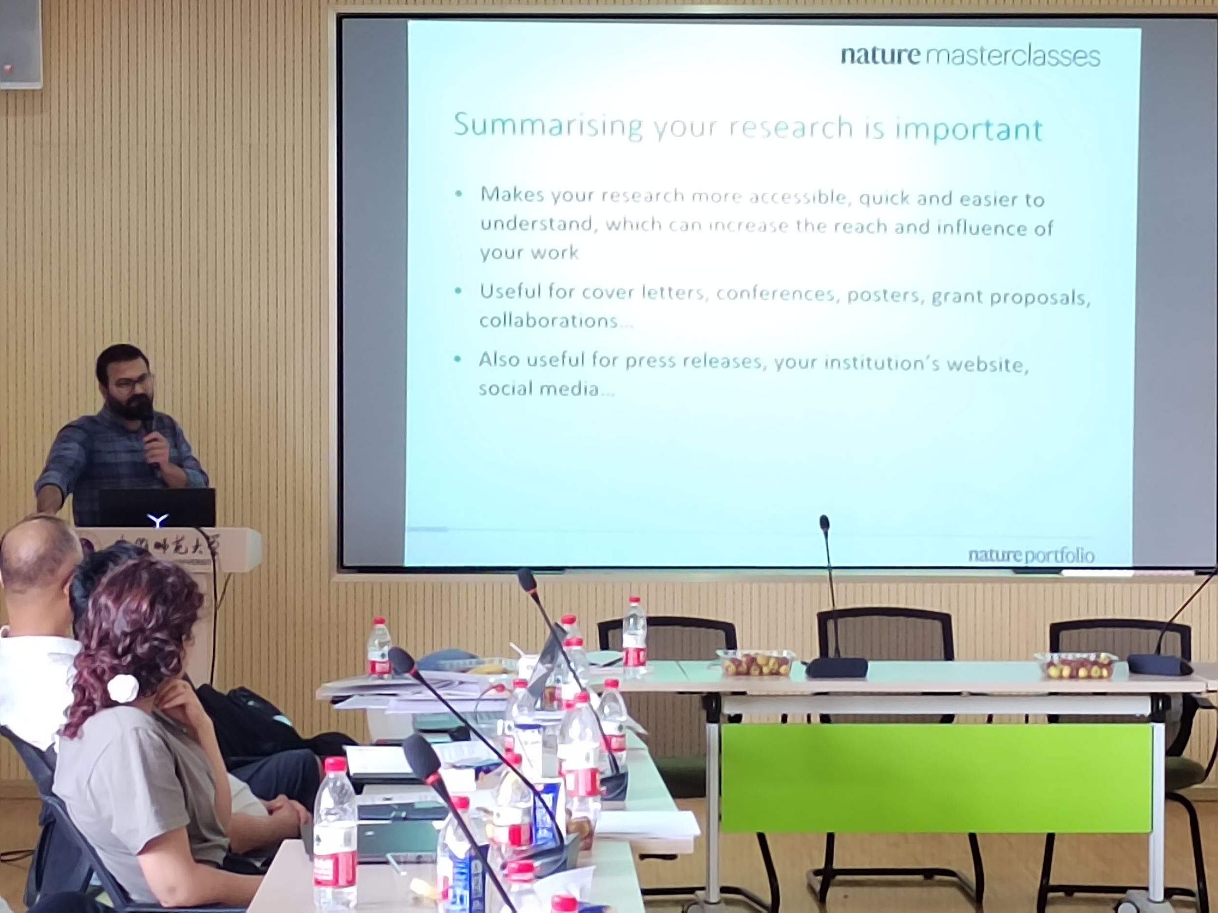 9月4-5日,开展了Nature大师班培训。首先,Prateek Dongare博士从顶级期刊编辑期待在一篇论文中看到什么出发,整体的介绍了如何完成一篇优秀的文章。之后他和Ronghua Zhang博士分别从文章题目、摘要、引言、结果与讨论、结论以及参考文献等部分系统了讲解了如何完成一篇引入入胜的论文。之后,两位博士介绍了Nature系列期刊的编辑流程和同行评议过程。最后,他们从如何正确的回答审稿人的评审意见,同行评议后的编辑过程,论文被接受后如何提高文章的影响力,以及如何处理论文被拒情况,如何避免抄袭和其他道德问题,为什么会发生研究不端行为,如何识别、应对研究不端行为等方面的写作技巧和注意事项。培训期间开展了多环节的互动讨论和练习,并对部分教师的文章摘要进行了一对一的交流指导。