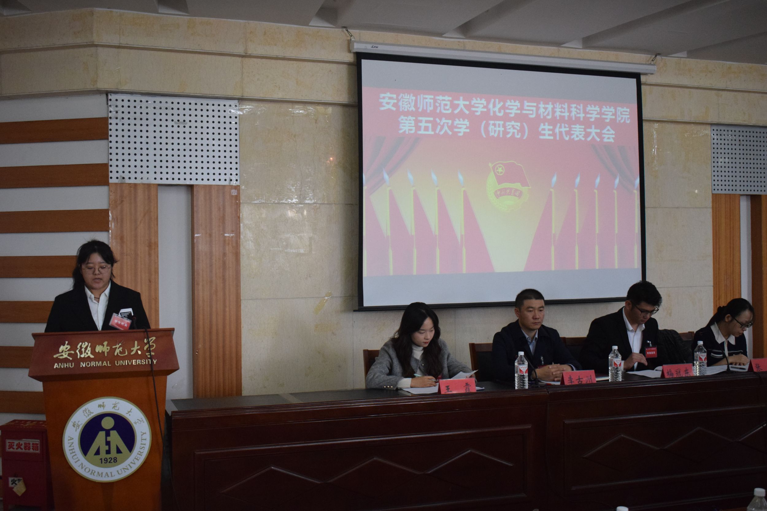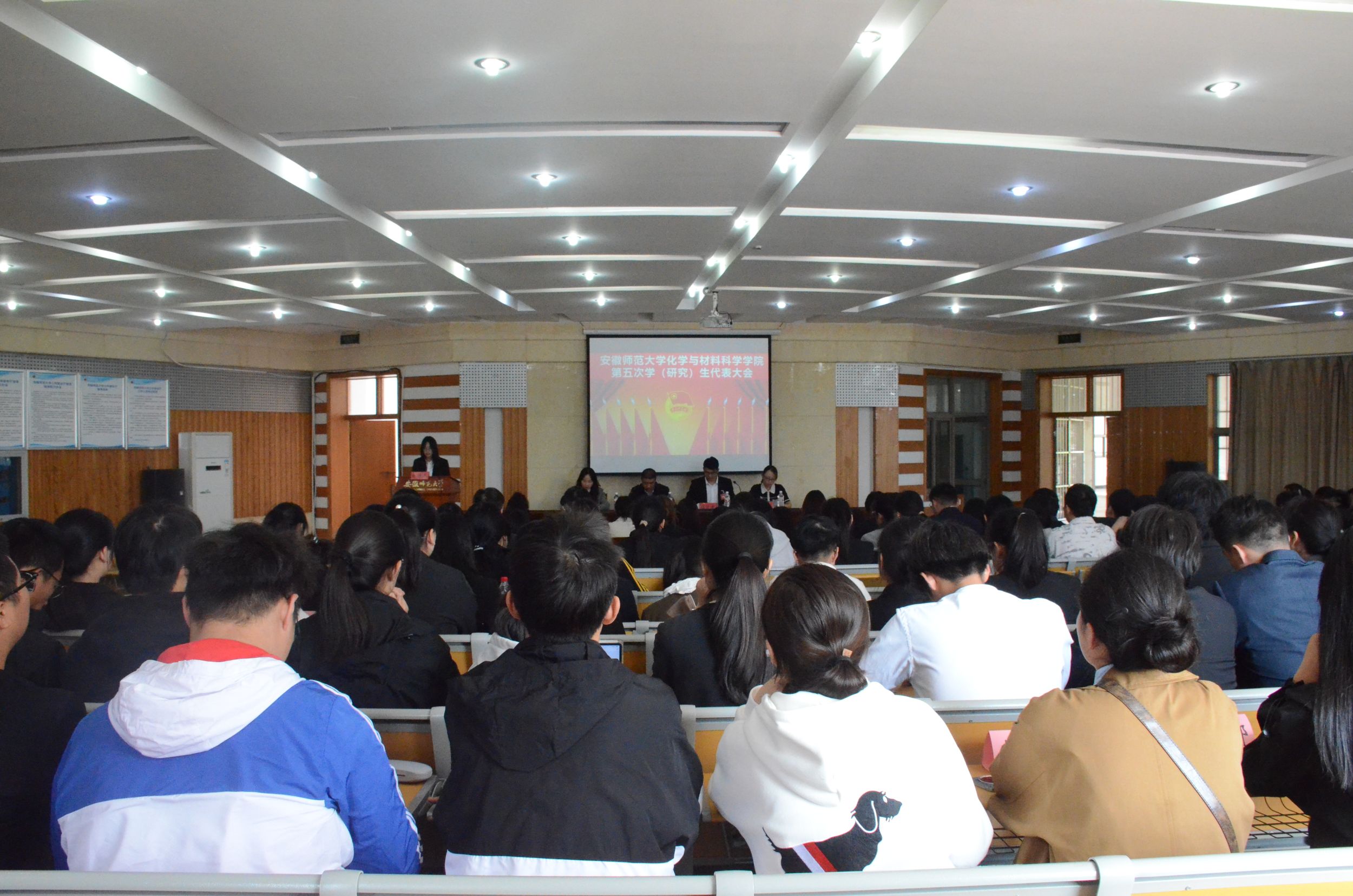 第五次学生代表大会暨第五次研究生代表大会在花津校区学苑北楼八号楼副楼报告厅召开,学院本科生代表、研究生代表参加大会。学院党委副书记李古州、团委书记梅冠东、团委副书记王霞,辅导员张薇应邀出席大会开幕式。会议由2023级化学师范专业周明月主持。