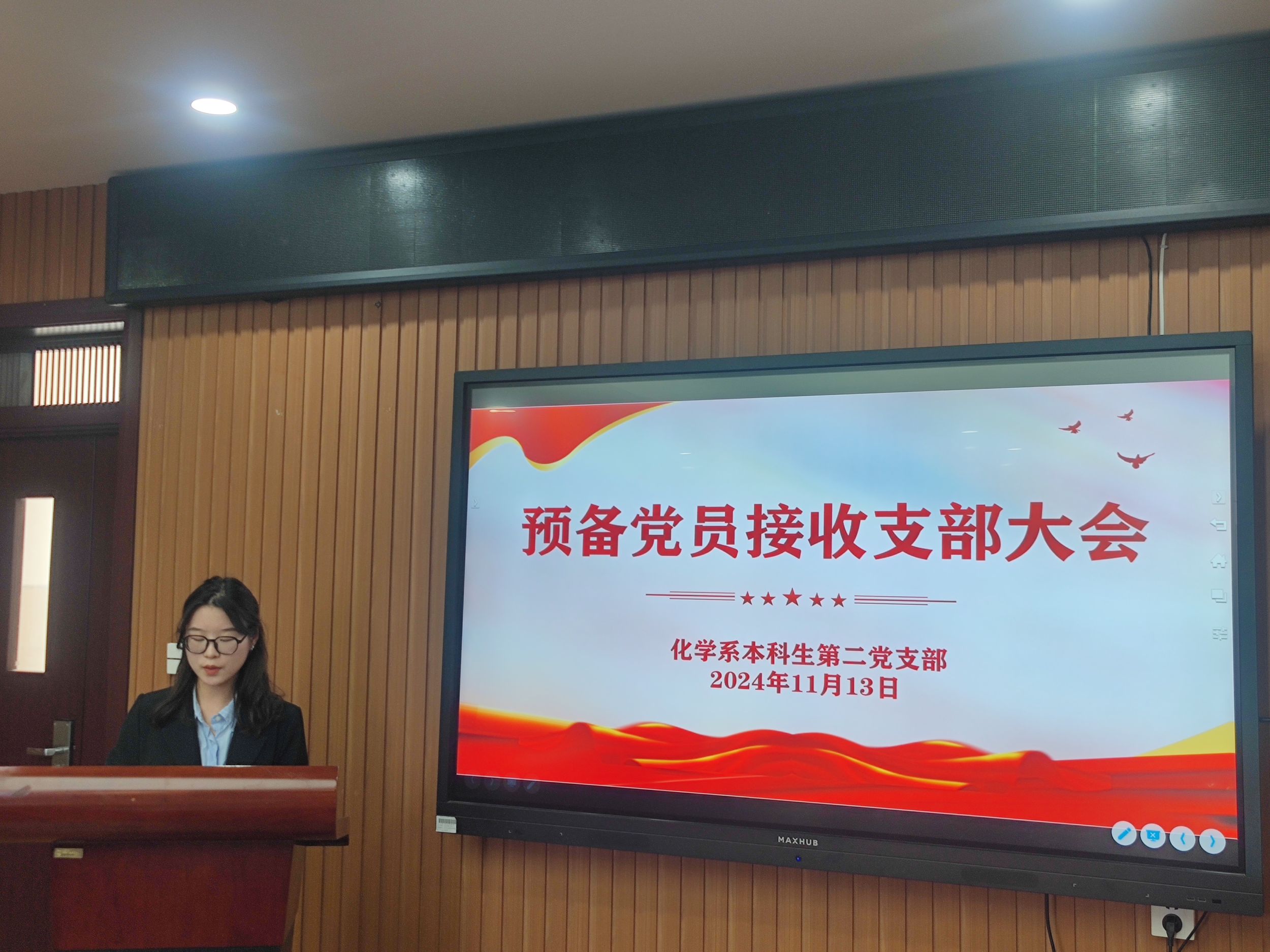 杨妍、陶勇)2024年11月13日下午,化学系本科生第二党支部于礼勤楼702会议室召开了党员发展支部大会,学院党委副书记李古州列席指导,会议由支部书记陶勇主持。