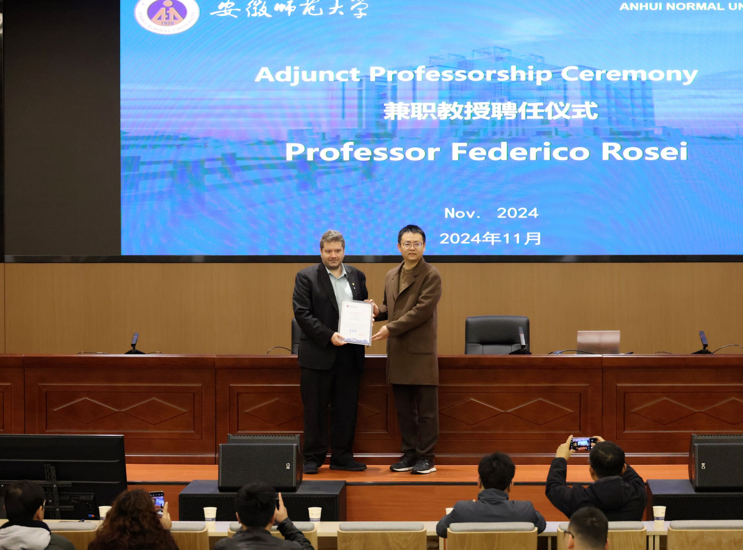 兼职教授仪式暨学术报告会在文典楼西侧裙楼三楼视频会议室举行。校党委副书记、常务副校长熊宇杰教授主持学术报告会,并向Federico Rosei院士颁发兼职教授证书。校人事处、国际交流合作处、色情视频