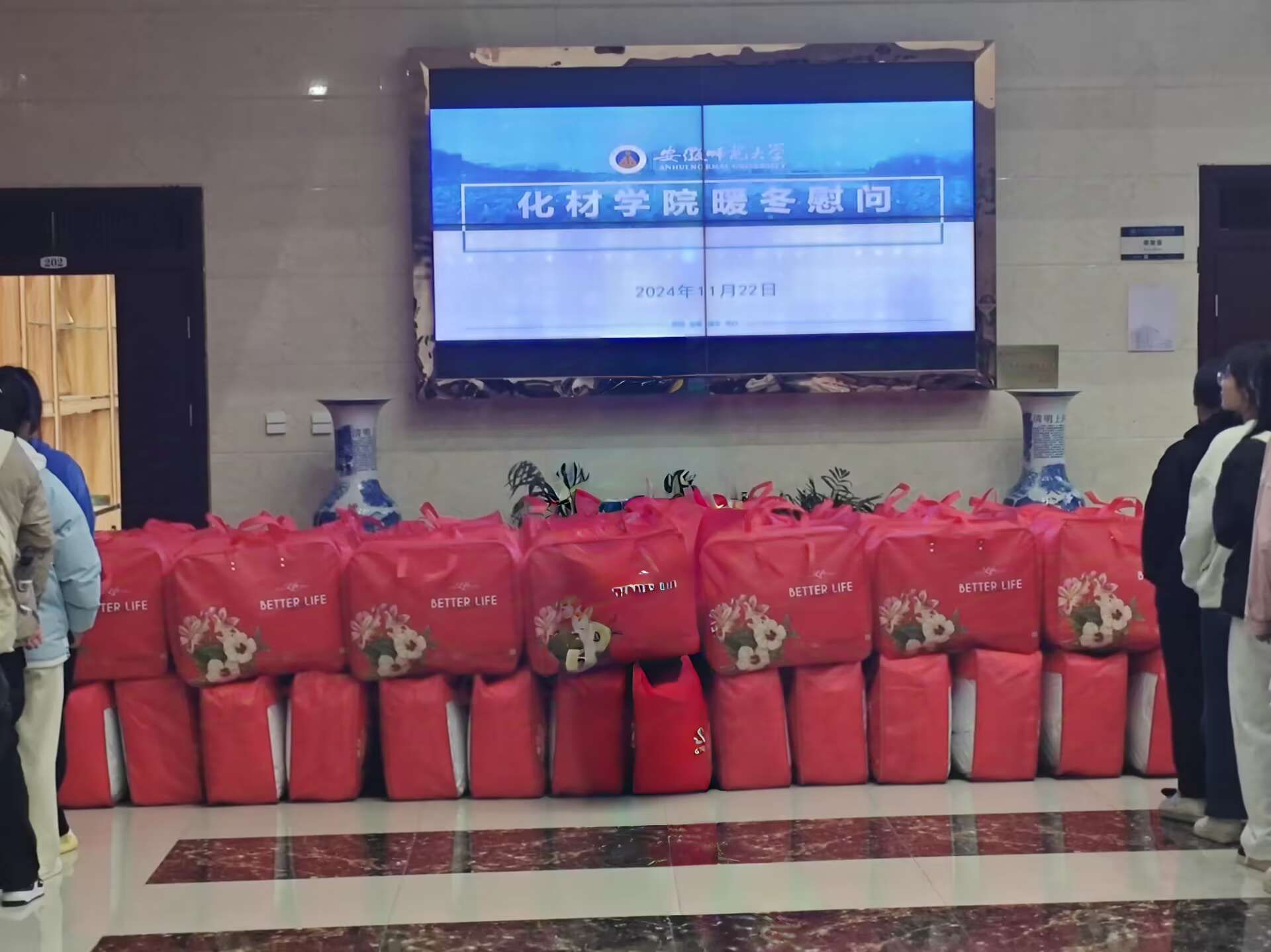 “刚上完实验课就收到领取棉被的通知,尽管天气寒冷,但心里感到非常温暖,感谢学院给予我们的关怀和帮助,我将倍加珍惜这份温情,刻苦学习,不辜负学院和学校的期望,争取在学业上取得优异的成绩。”2024级王同学满怀感激地说。