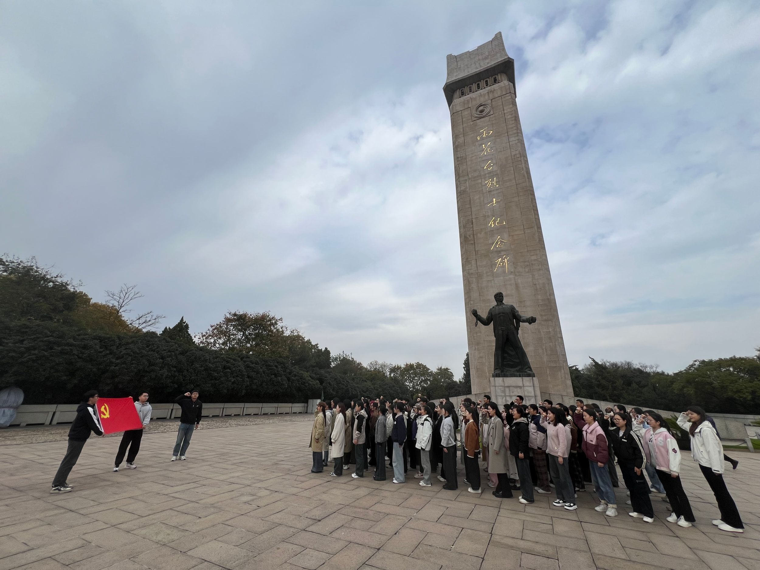 缅怀雨花英烈,赓续红色基因。11月24日,学院组织培训班全体学员前往南京市开展实践活动,集体参观了雨花台烈士陵园。学员们怀着崇敬的心情参观了雨花台革命历史陈列馆。讲解员声情并茂地向师生们讲述了以邓中夏、恽代英、施滉、许包野、丁香为代表的一大批共产党员的英雄事迹、不屈精神与革命信念。 随后,大家前往烈士纪念碑进行瞻仰,缅怀革命先烈。秋风萧萧、拾级而上,陵园里苍松翠柏,纪念碑庄严肃穆。大家怀着沉重的心情,在纪念碑前默哀、鞠躬,表达对革命先烈的敬仰和追思。