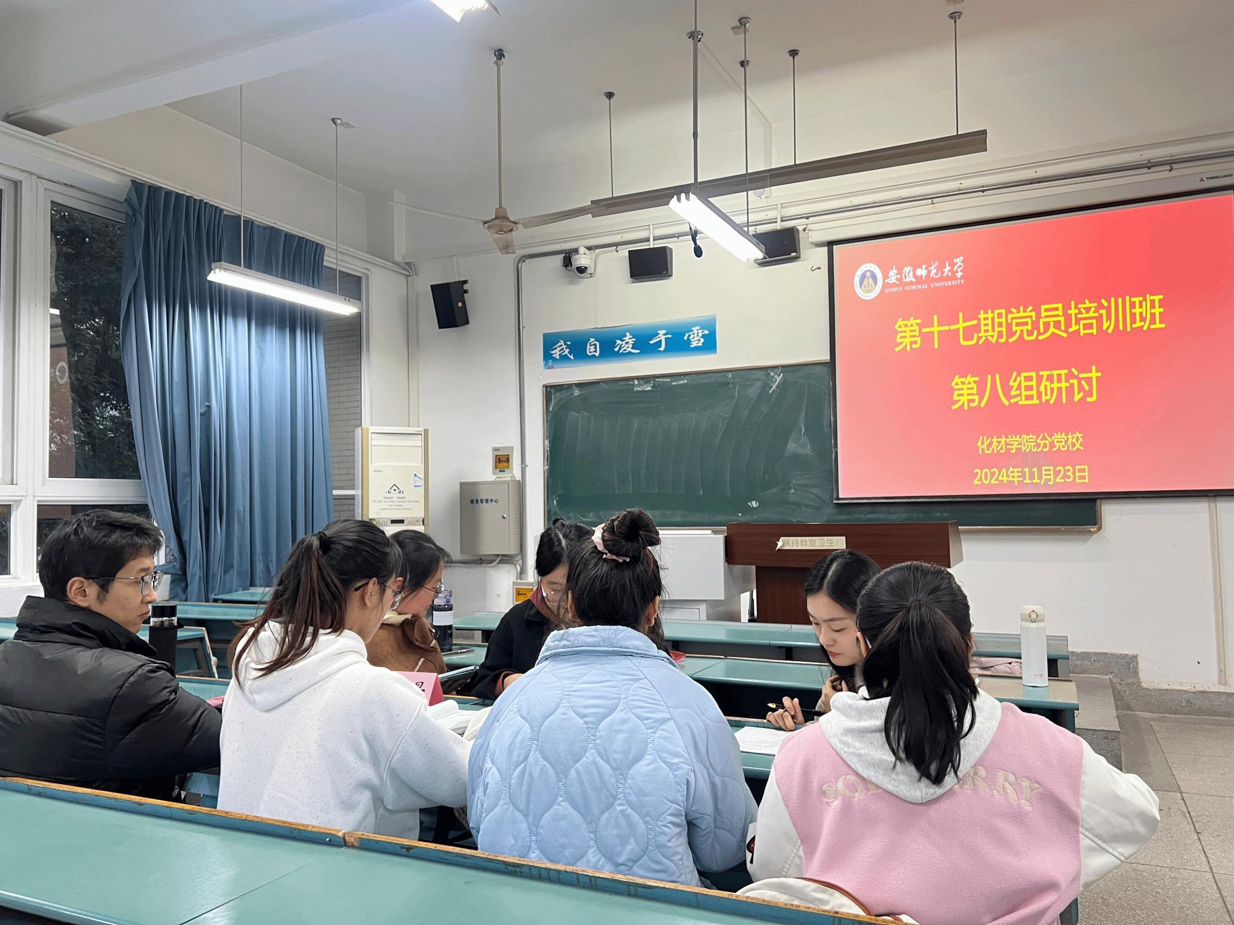 理论联系实际,思想碰撞经验。在理论学习后,全体学员分组开展理论研讨交流活动。各个小组学员围绕党的二十届三中全会精神和习近平总书记考察安徽重要讲话精神,结合所学专业和自身情况进行研讨交流。通过本次研讨活动,更好地将理论知识融入到实际生活和学习中,为实现中华民族伟大复兴的中国梦贡献自己的力量。
